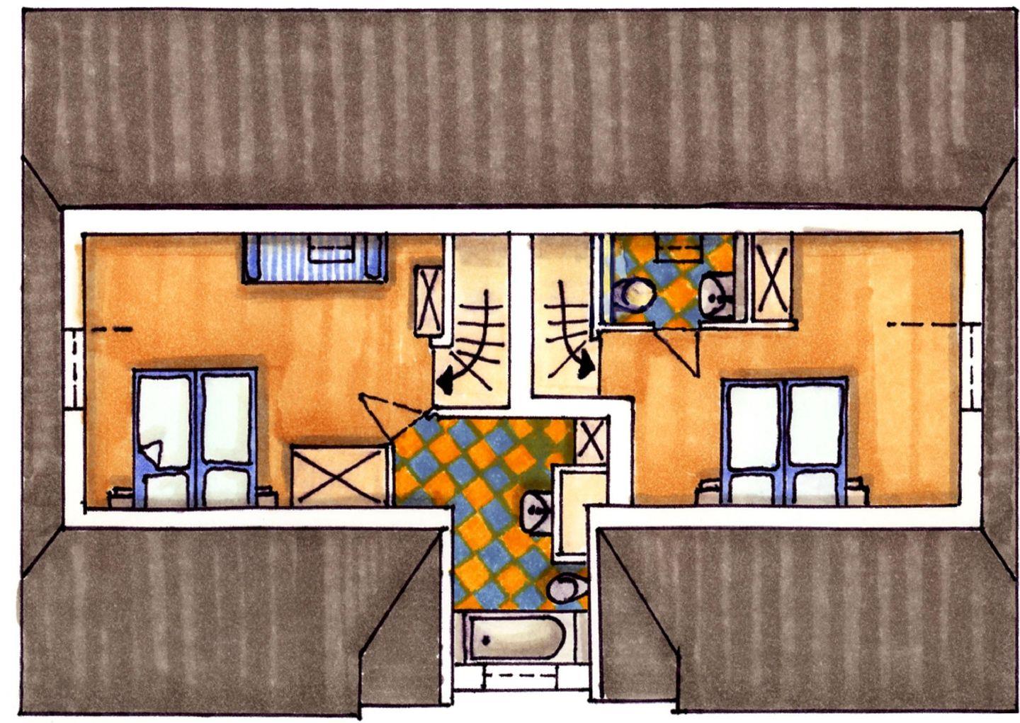 - 2 x Einzelbett (Offenes Fußteil)