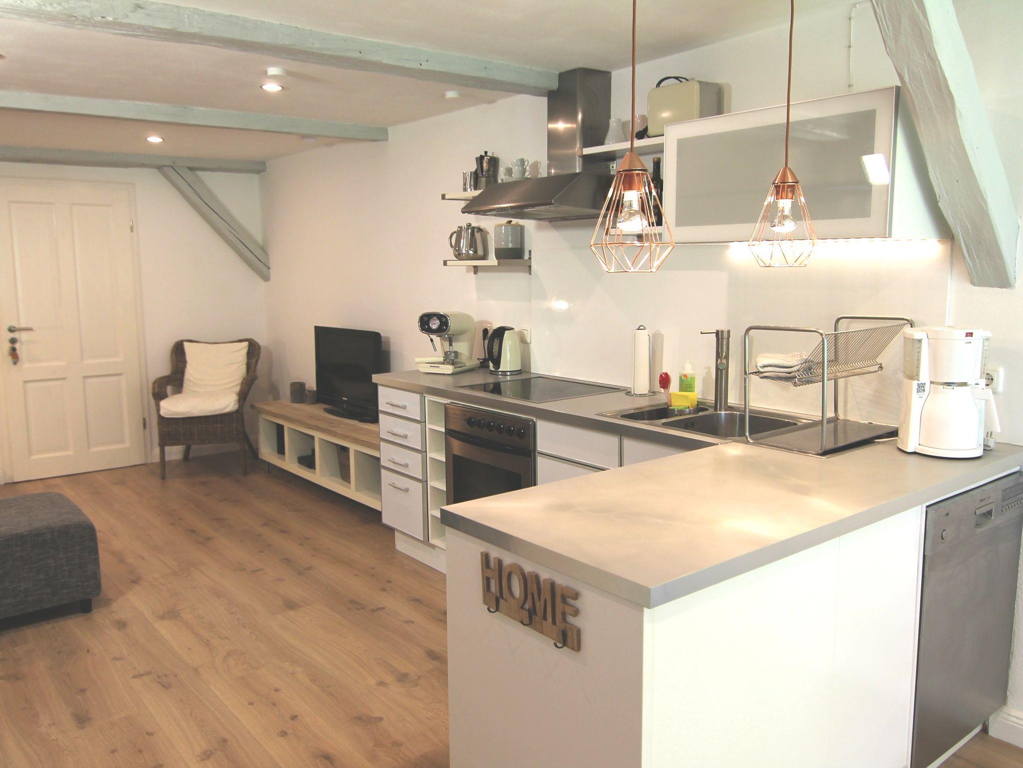 Wir haben dem Appartement den modernen nordischen Wohnstil gegeben. Es vereint das Bedürfnis nach Gemütlichkeit, Schönheit des Natürlichen sowie Bewusstsein für Design. Einfach skandinavisch, Zeit für Licht, Leichtigkeit und Landlust. Die modern und nordisch schlicht eingerichtete 65 qm Wohnung mit freiliegenden Balken hat von allen Zimmern aus einen Blick in unseren Bauerngarten und ist damit sehr ruhig gelegen. Ein kleiner Balkon rundet diese Wohneinheit ab. Sie ist für 4 bis maximal 5 Personen geeignet. Die Wohnküche ist mit Lehmputz, der für ein gesundes und angenehmes Raumklima sorgt, und Wandstrahlungsheizung ausgestattet.