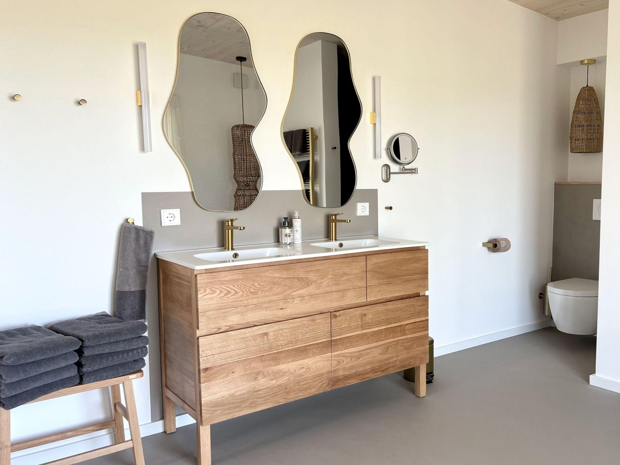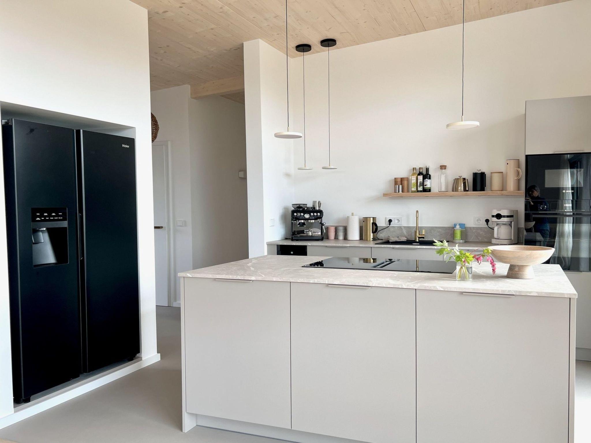 Moderne Architektur und Design trifft auf Natur Dieses exklusive Designhaus, nur 50 Meter vom Hof entfernt, wurde Ostern 2025 fertiggestellt und bietet auf 130 m² Wohnfläche jeden Komfort. Der natürliche Einrichtungsstil mit warmen Tönen und organischen Materialien schafft eine harmonische Atmosphäre. Mit drei Schlafzimmern für bis zu 6 Personen, großen Fenstern mit weitem Blick und überdachten Terrassen ist es der perfekte Ort für Familien und Freunde. Ein großzügiger Wohn- und Essbereich mit Kamin sowie eine voll ausgestattete Küche mit Weinkühlschrank laden zum Genießen ein. Das Wellnessbad mit freistehender Badewanne, Panoramablick und Sauna sowie der Außenbereich mit Hot Tub und Außendusche machen diesen Rückzugsort perfekt. Ein Ort, um Ruhe, Weite und Natur zu erleben – Architektur zum Wohlfühlen!