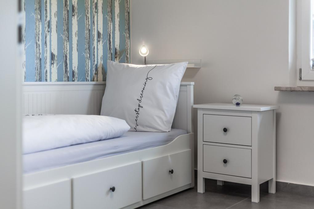 In dem zweiten Schlafzimmer befindet sich ein gemütliches Kojenbett (2 x 0,80 x 2 m) , in dem ebenfalls 2 Personen einen herrlichen Schlafplatz finden und ein Kleiderschrank ist auch in diesem Zimmer selbstverständlich vorhanden.