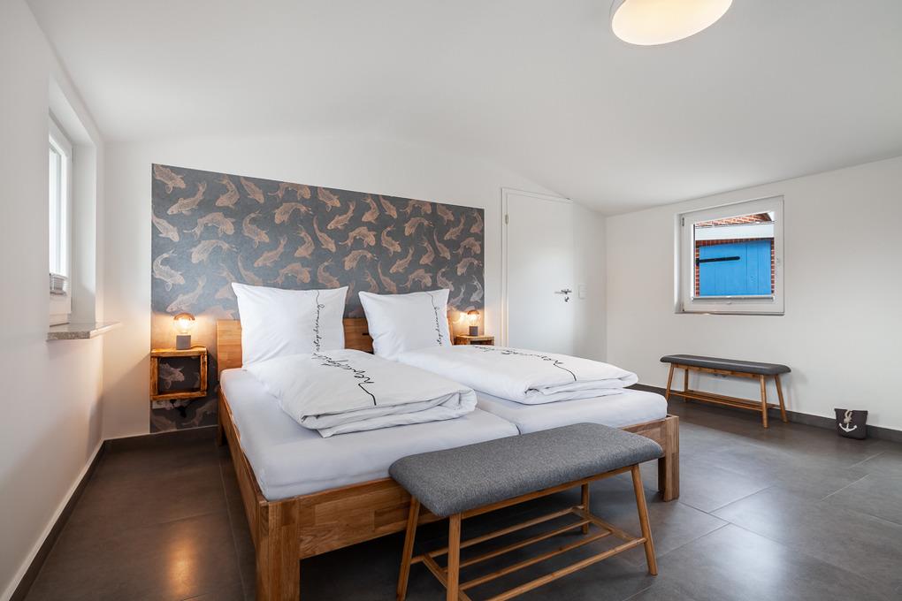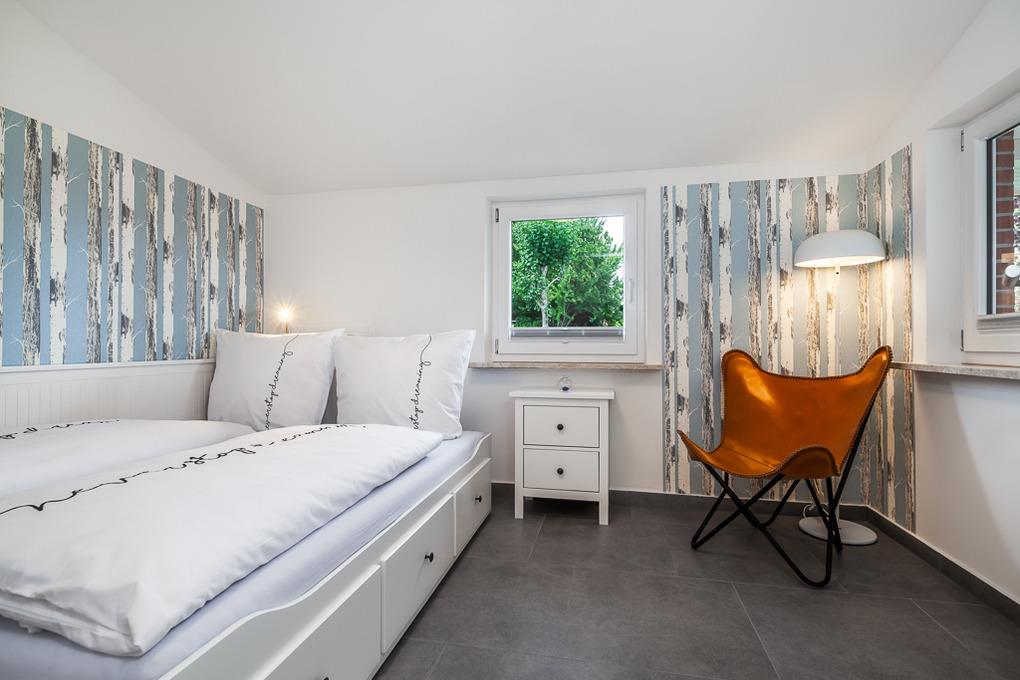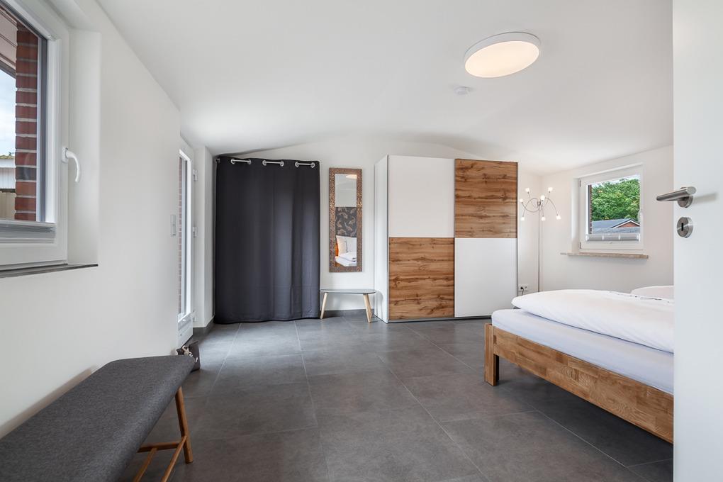 Das größere der 2 Schlafzimmer mit ca. 20 qm bietet Ihnen ein Kingsize-Bett (1,80 x 2 m) sowie einen geräumigen Schiebetürenschrank. Außerdem haben Sie von hier einen direkten Zugang zum uneinsehbaren Innenhof.