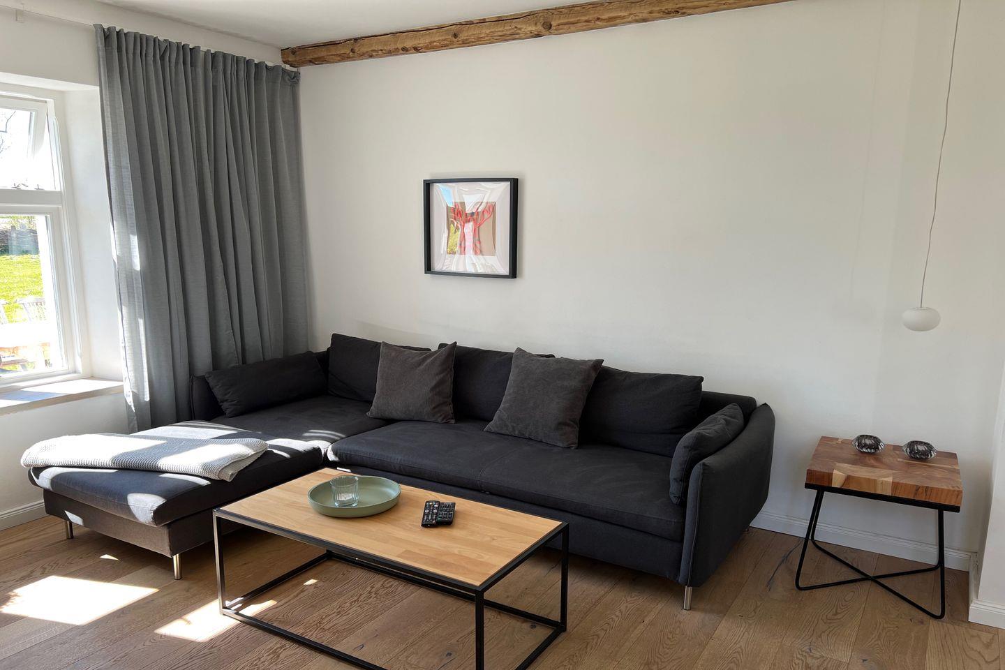 Die liebevoll im skandinavisch Stil gewählte Einrichtung verleiht diesem sehr gut ausgestatteten Haus seinen nordischen Charme. Es bietet Platz auf zwei Etagen für eine Großfamilie. Eine voll ausgestattete Küche und ein großer Wohnessraum mit Kamin laden zum gemeinsamen Verweilen ein. Der große Garten mit Blick auf die Felder sowie zwei Terrassen und eine eigene Außensauna runden das Gesamte ab. Moderner Komfort kann mit allen Annehmlichkeiten eines Bauernhofurlaubes verbunden werden.