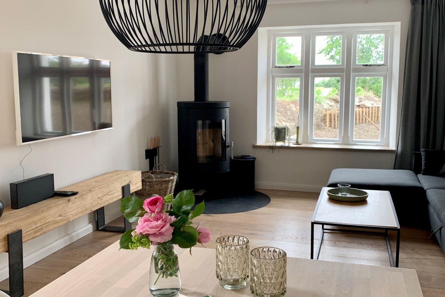 Charmantes Ferienhaus im nordischen Stil mit Sauna, Kamin und großem Garten auf einem idyllischen Warfthof.