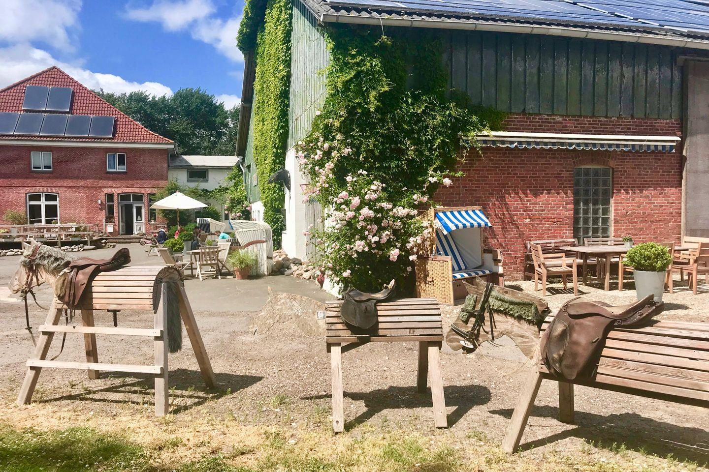 Unser Warfthof Wollatz ist vielfältig. Für die Kinder bieten sich diverse Spielmöglichkeiten auf dem weitläufigen Hofgelände. Für die Eltern haben wir gemütliche Sitzplätze, der Strandabschnitt am Schwimmteich und unser Saunahaus mit Sonnenterrasse laden zum Verweilen ein. Während die Eltern ihren Kaffee genießen oder ein gutes Buch im Strandkorb lesen, genießen die Kinder das Gefühl von Freiheit, toben auf dem Strohboden, flitzen mit den GoKarts über den Hof oder begeistern sich bei einer Treckerfahrt mit Bauer York. Wir ermöglichen den natürlichen Umgang mit vielen Tieren und bieten euch ein breites Reitangebot für kleine und große Reitbegeisterte.