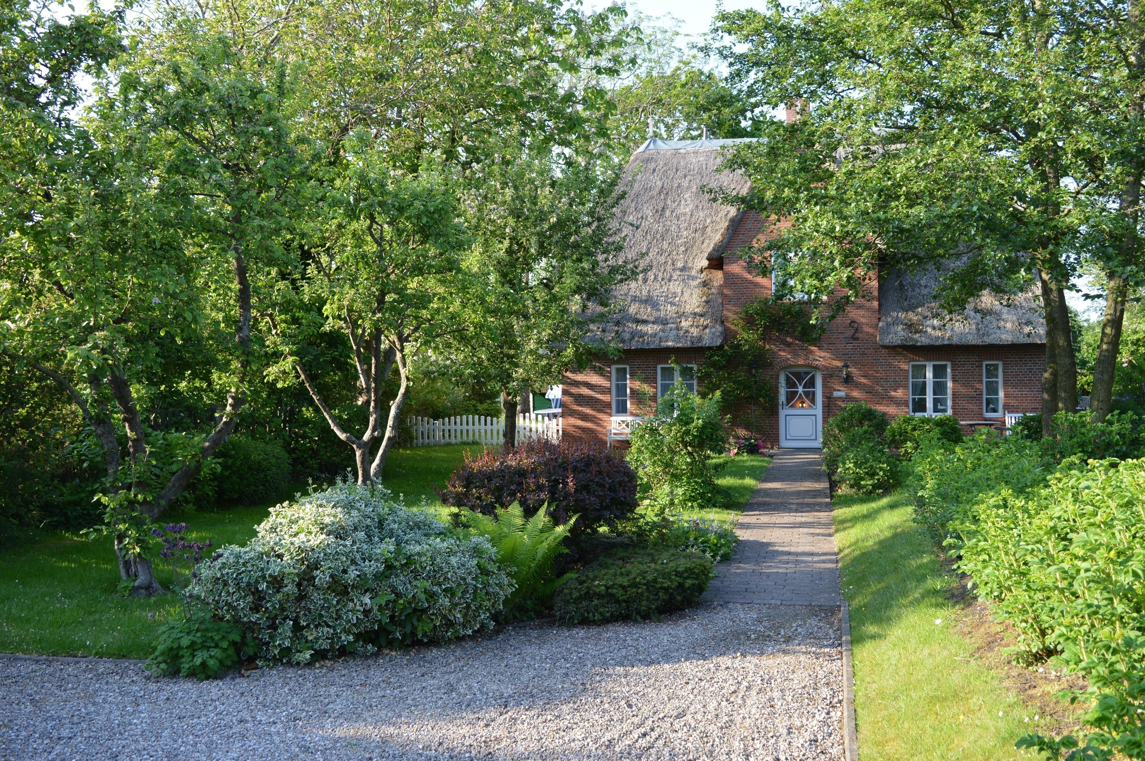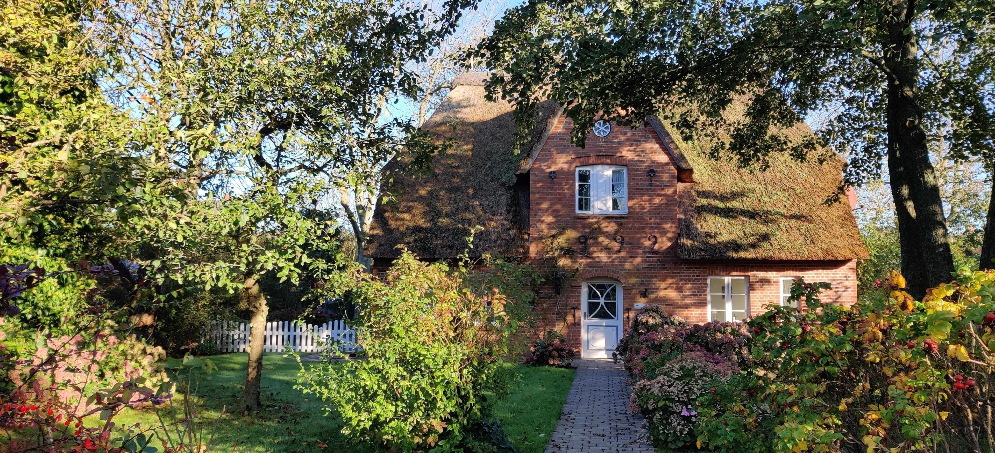 Charmantes Ferienhaus mit Reetdach in Süderende, idyllisch, mit Garten, Terrasse und Strandkorb, nahe Radweg zum Strand.