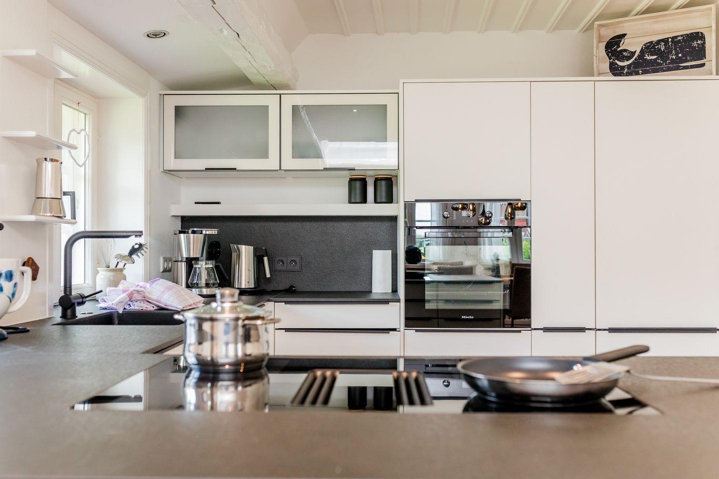 Zu den Highlights der Ferienunterkunft zählen wir u. a. die hochwertige Küche, die hauseigene Sauna und den Garten mit Terrasse.