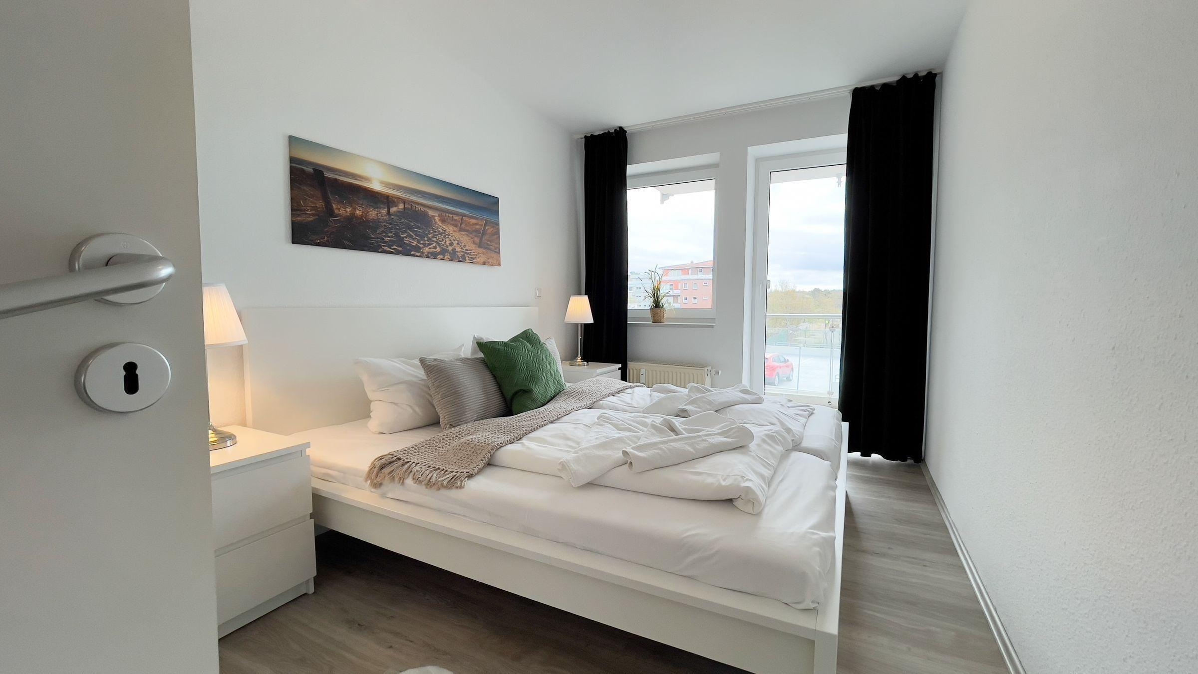 Moderne Ferienwohnung in Sahlenburg mit Meerblick, Balkon und vielfältigen Freizeitmöglichkeiten für Familien.