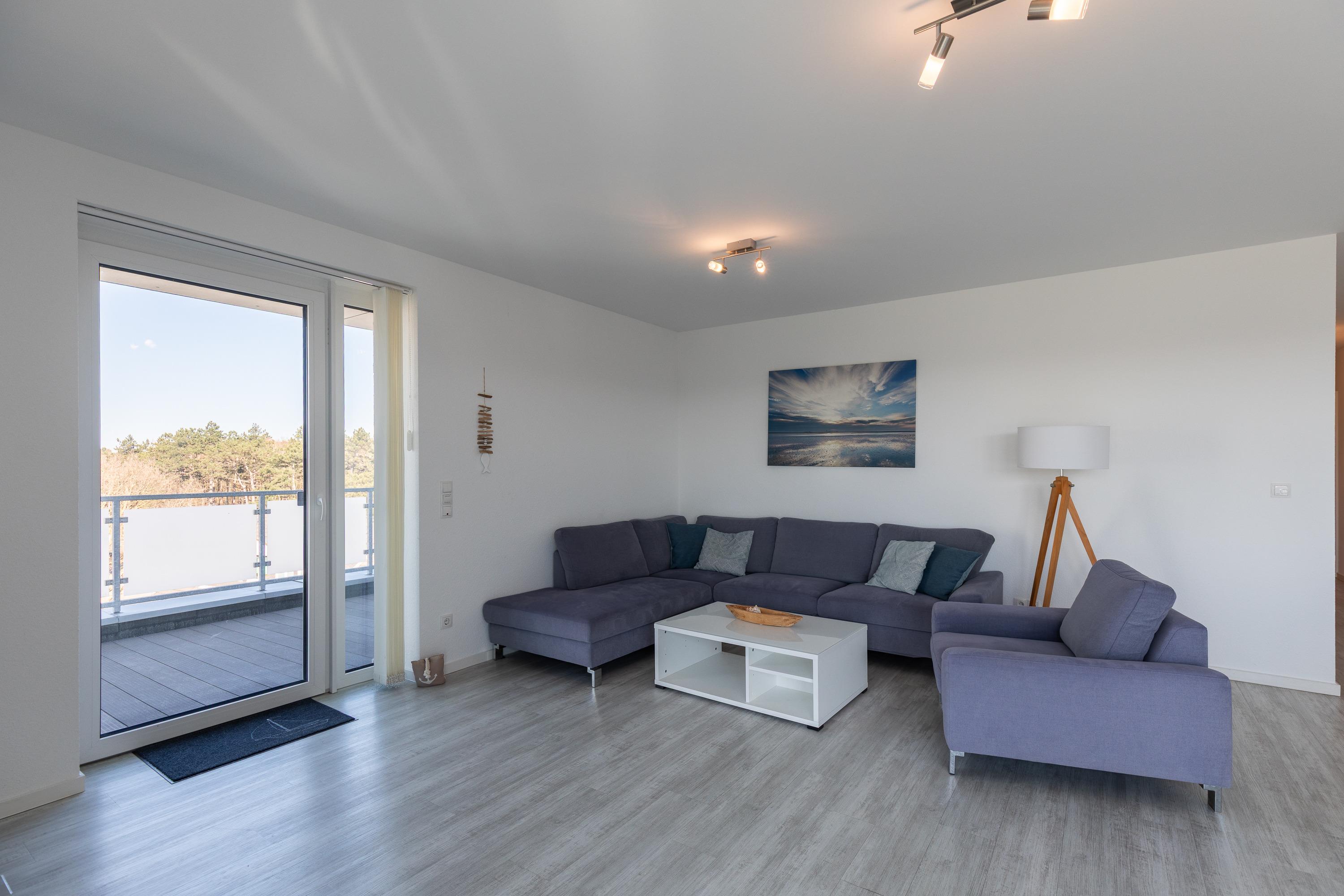 Moderne 3 Zimmer Penthouse Wohnung im 3. Obergeschoss für bis zu 4 Personen, 1 Schlafzimmer mit Doppelbett, TV und Zugang zur großen Dachterrasse, 1 Schlafzimmer mit 2 Einzelbetten, TV und direktem Zugang zur großen Dachterrasse, Wohnzimmer mit Blick Richtung Werner Wald und Nordsee (teil. Seesicht), Einbauküche (Backofen, Cerankochfeld, Mikrowelle, Kaffeemaschine, Wasserkocher, Toaster, Geschirrspüler), gemütlicher Sitzecke mit Ecksofa, Essplatz, TV und Zugang zur großen Dachterrasse, gegenüber der Schlafzimmer befindet sich ein begehbarer Kleiderschrank mit genug Stauraum für Ihr Gepäck im Urlaub, Bad mit 2 Waschbecken, Dusche, WC, Zugang zur gr0ßen Dachterrasse und eigener Sauna (kostenfrei), Gäste WC, Abstellraum mit Waschmaschine und Trockner (beides kostenfrei), große Dachterrasse mit Blick auf den Wernerwald und Teilseeblick auf die Nordsee, Fahrstuhl im Haus, reservierter PKW Stellplatz, Tiefgarage, Nichtraucherwohnung.