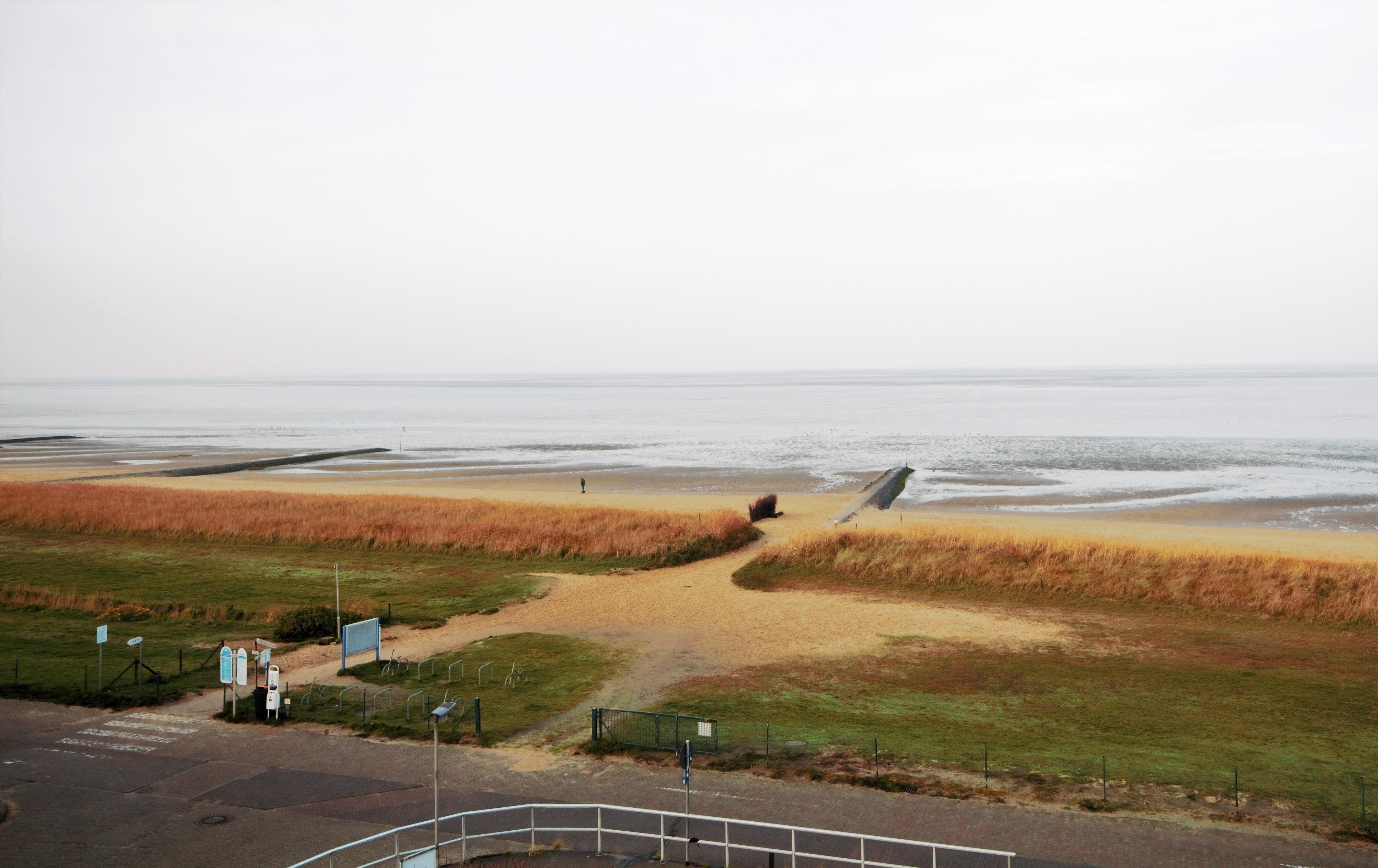 Moderne 3-Zimmer-Ferienwohnung direkt am Nordseedeich in Sahlenburg mit Meerblick und Balkon.