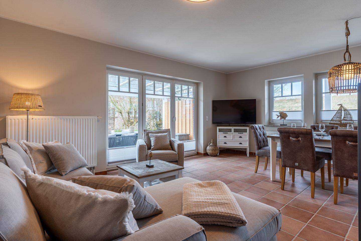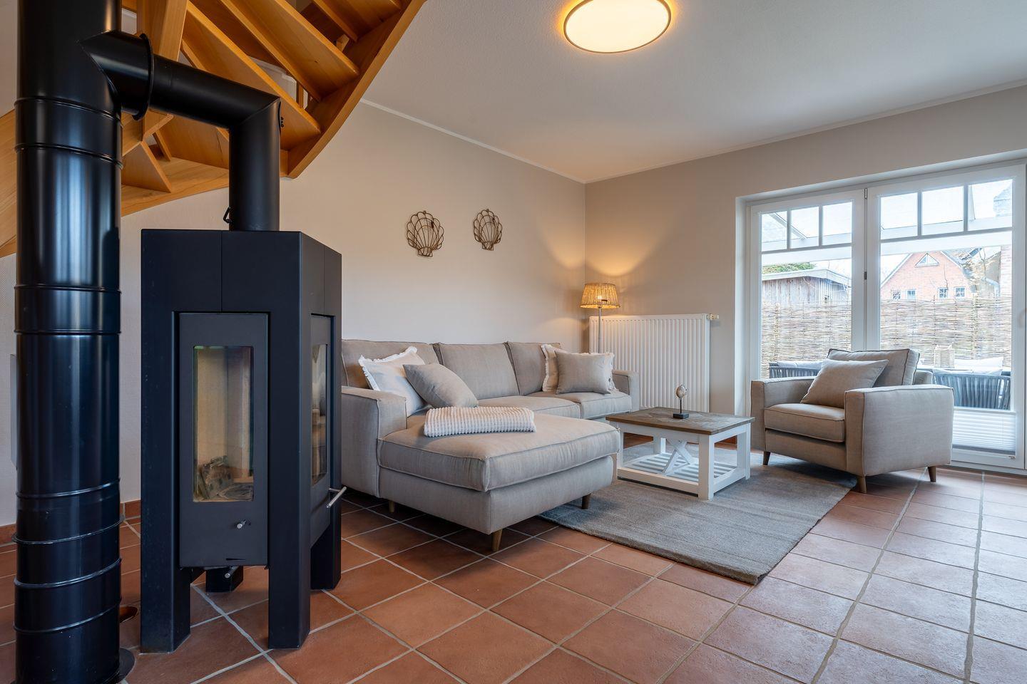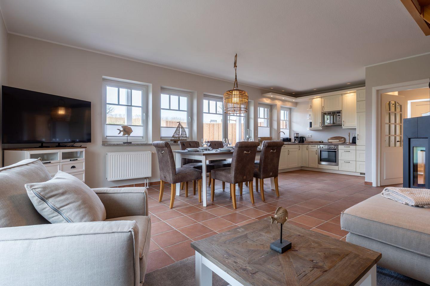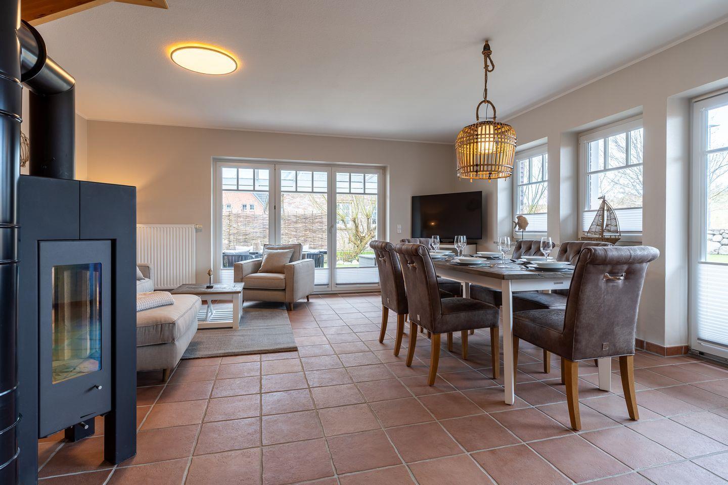 Großzügiges Ferienhaus Diekhus 1 in Sankt Peter-Ording mit Garten, Balkon, Terrasse und Kaminofen direkt am Deich.