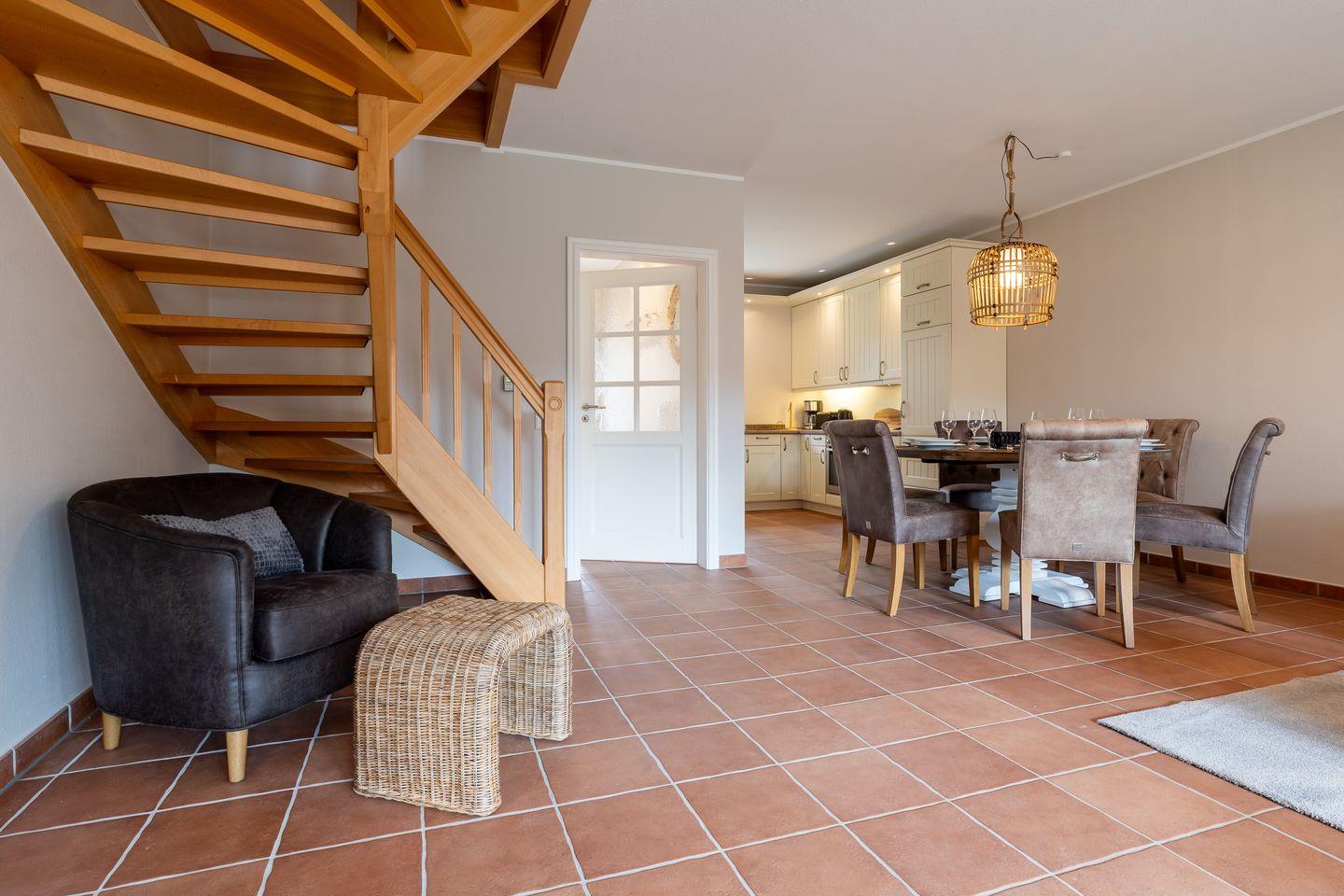 Bei der Ausstattung der Unterkunft wurde an alles gedacht. Auf zwei Etagen finden Sie drei geschmackvoll eingerichtete Schlafzimmer, die eine ruhige und erholsame Nachtruhe versprechen. Zudem steht Ihnen ein Gäste-WC sowie ein modernes Badezimmer mit Dusche zur Verfügung.
