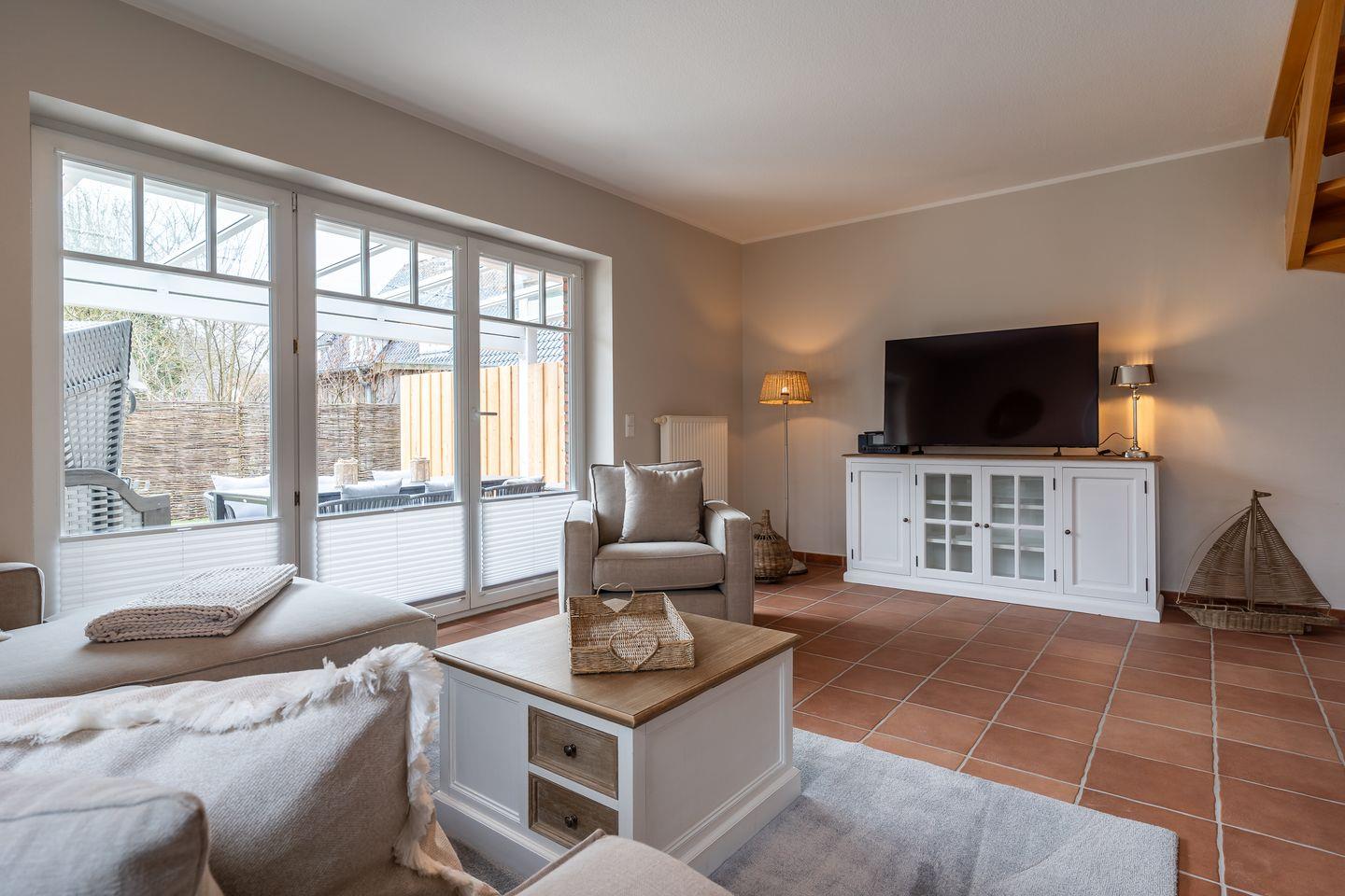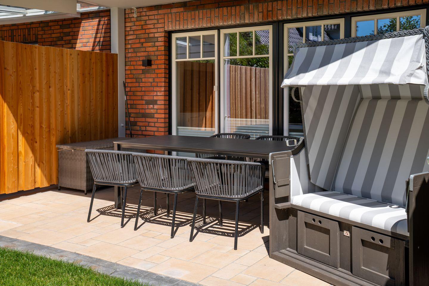 Der Außenbereich der Unterkunft ist besonders hervorzuheben. Die überdachte Terrasse lädt dazu ein, auch bei weniger gutem Wetter die frische Nordseeluft zu genießen. Gardenmöbel sind ebenfalls vorhanden, sodass Sie die ruhigen Stunden in der Natur verbringen können. Ein Strandkorb bietet Ihnen den perfekten Ort, um die Sonne zu genießen.