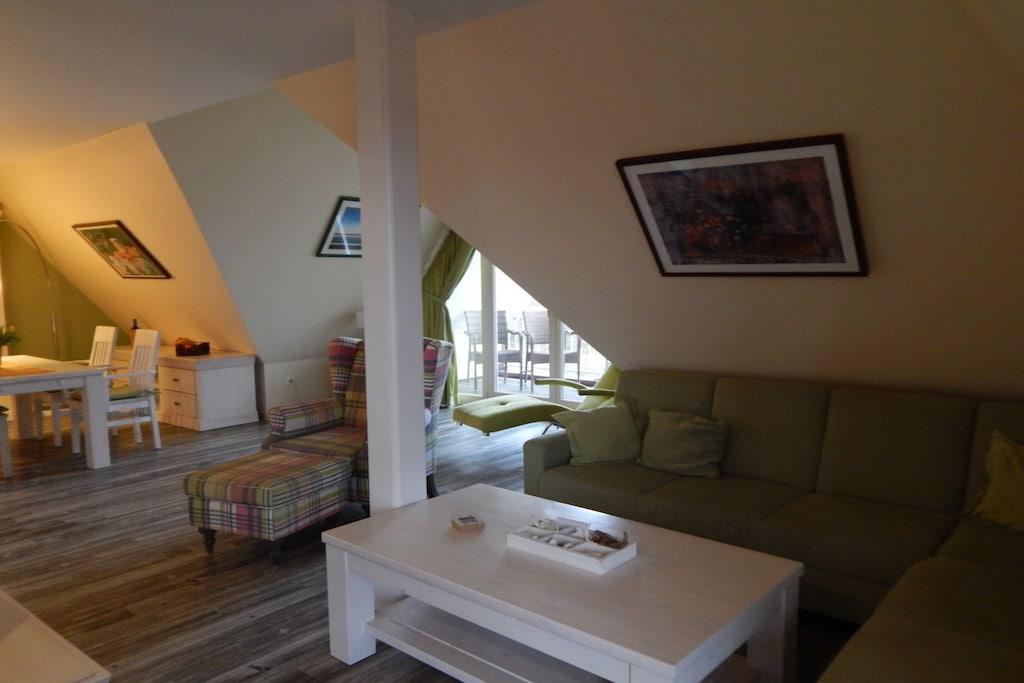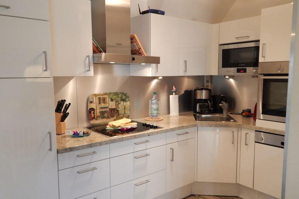Die Ferienwohnung in luxuriöser Ausstattung lässt keine Wünsche offen. Exklusive Möbel, Accessoires und allerlei Annehmlichkeiten sind stilvoll aufeinander abgestimmt. In den hochwertigen Bädern mit Granitausstattung befinden sich Dusche, Doppelwaschbecken, Bidet,Badewanne, Handtuchwärmer mit Handtüchern und Bademänteln. Die geräumige Küche hat alles was zu einem entspannten Kochen gehört. Selbstverständlich gehört zu einem gemütlichen Wohnzimmer Telefon, TV und DVD-Player mit Stereoanlage. Klimatisierte Schlafzimmer. Der eigene überdachte Balkon lädt zum Verweilen ein. Die gesamte Ferienwohnung auf 2 Ebenen verfügt über eine Fußbodenheizung. Genießen sie die Ruhe in unserem Wellnessbereich mit Sonnenbank, finnischer Sauna und Wärmekabine im EG des Hauses.