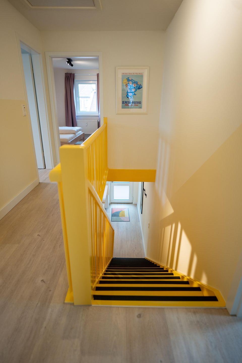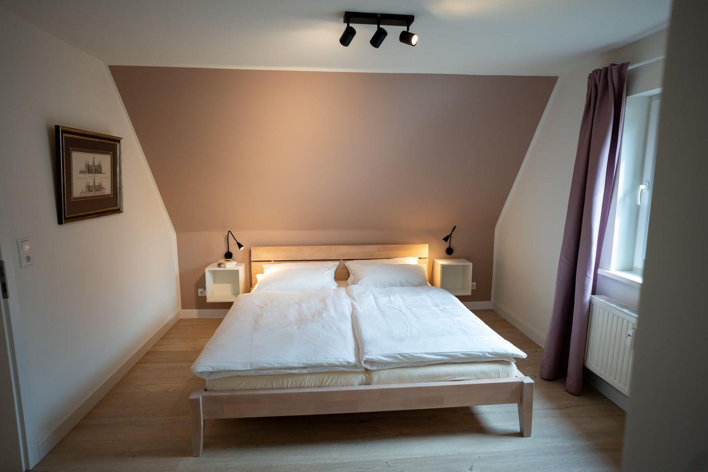 In allen Schlafzimmern sorgen Fenster mit Verdunklungsmöglichkeit für einen erholsamen Schlaf. Die moderne Ausstattung und liebevolle Gestaltung garantieren einen entspannten Start in den Tag.