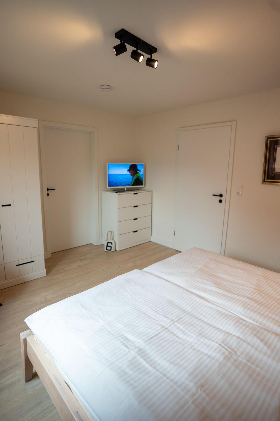 Im OG erwarten Sie vier behagliche Schlafzimmer, die sowohl für Familien als auch für kleinere Gruppen optimal nutzbar sind. Zwei Schlafzimmer sind mit komfortablen Doppelbetten, Kleiderschränken und je einem eigenen TV ausgestattet – ideal für Paare oder Erwachsene, die Wert auf Privatsphäre und Komfort legen. Die beiden weiteren Schlafzimmer verfügen jeweils über ein Einzelbett sowie eine Kleidungsablage und bieten Kindern oder Einzelpersonen eine ruhige Schlafstätte.