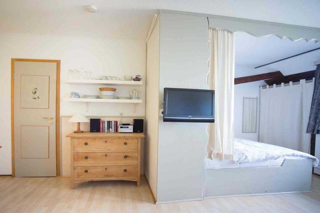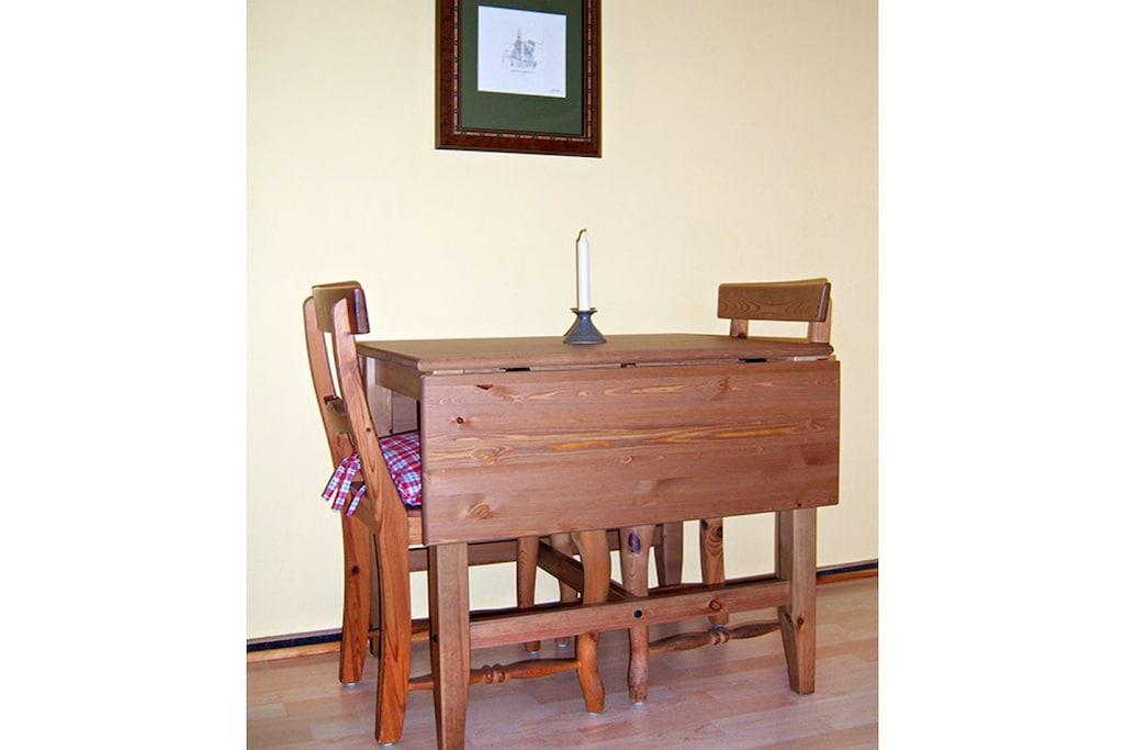 Die Ferienwohnung Sonnenzimmer hat eine schöne, ruhige Nordostlage. In dieser Wohnung wurden antike Möbel und helle Farben stilvoll kombiniert. Einige der tragenden Balken wurden aufwendig freigelegt. Gemälde aus der Region runden das authentische Wohngefühl ab. Vom kombinierten Wohn-/Schlafraum genießen Sie den weiten Blick über die weiten Wiesen. Der integrierte Alkoven ist sehr gemütlich! Der sonnige Balkon lädt zum Frühstücken ein.