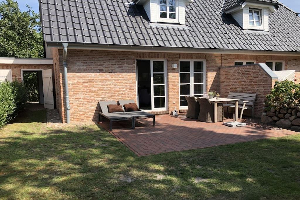 Exklusives 5 Sterne-Ferienhaus, 105 qm für 1-5 Personen, mit hochwertiger moderner Ausstattung. Unser Haus verfügt über zwei Schlafzimmer mit Doppelbetten, zwei Badezimmer, Fußbodenheizung im EG u. Bad 1OG, Waschmaschine, Trockner, WLAN, möblierter Terrasse, eingezäunter Garten u. Gartenhaus. Ferner über ein großzügiges Wohnzimmer mit Kaminofen und mit einem großen 3D-TV, 3D Blu-ray-Player u. iPhone-Dockingstation. Die moderne EBK (Leicht) ist ausgestattet mit einem Geschirrspüler, Backofen, großem Kühlschrank mit Gefrierfach, Induktionskochfeld, Mikrowelle und Kaffeeautomat. In das ausgebaute Dachzimmer im 2OG mit gemütlichem Schlafsofa, kuscheligem Schaukelstuhl u. 3D-TV können Sie sich zum Lesen oder Seele baumeln lassen zurückziehen.