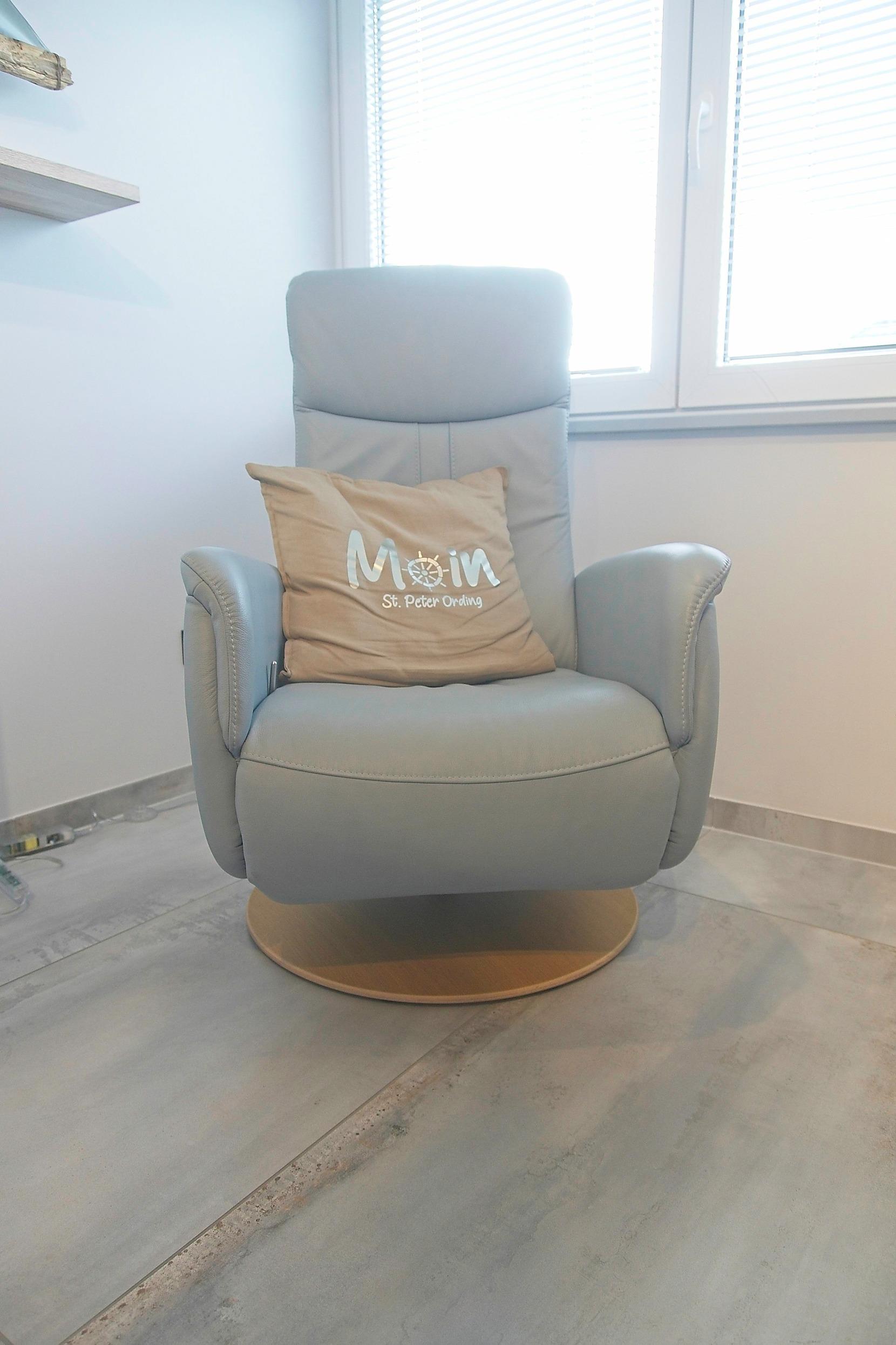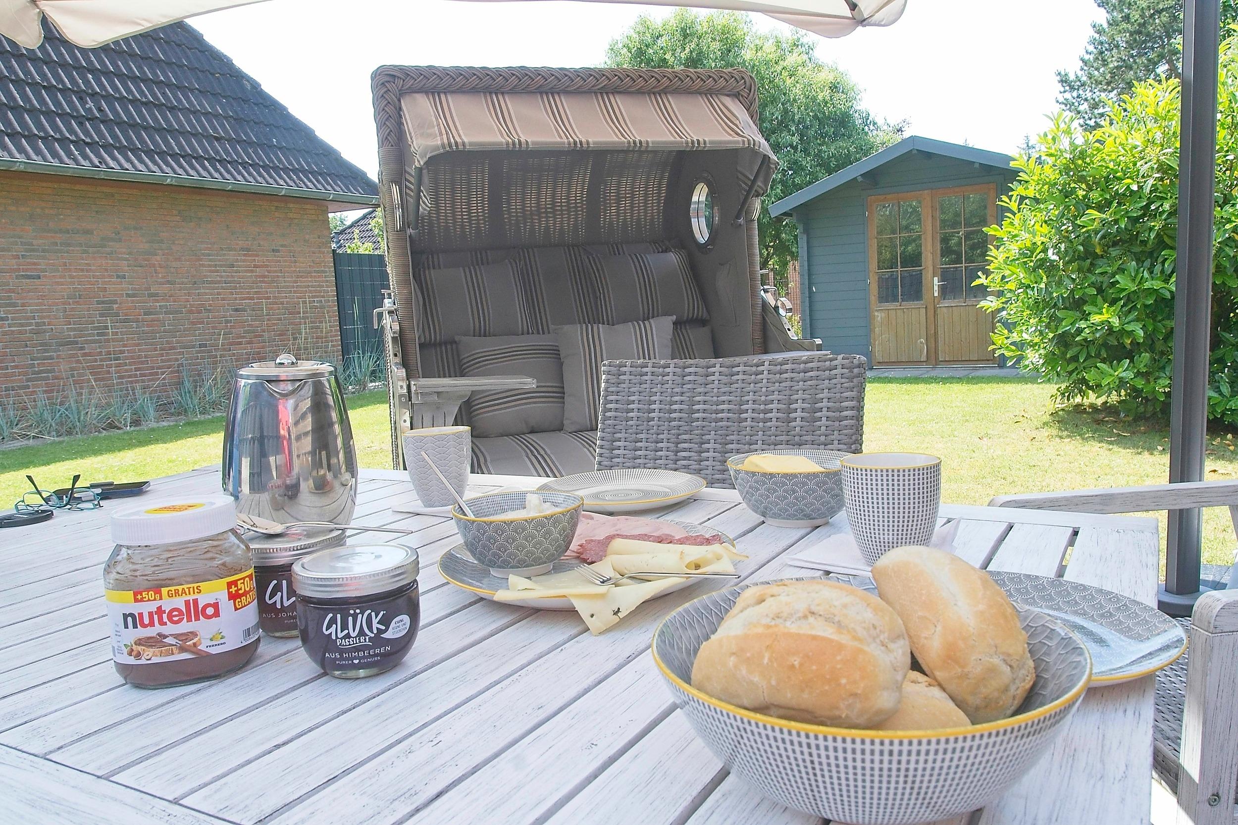 Modern eingerichtete 2-Zimmer-Ferienwohnung in Sankt Peter-Ording mit Terrasse und eigenem Strandkorb.