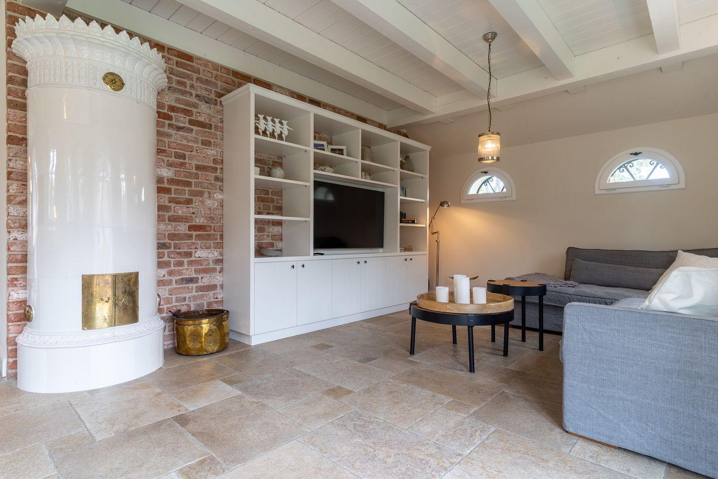 Das Ferienhaus besticht durch hochwertige Möbel und ein harmonisches Ambiente. Im lichtdurchfluteten Wohnzimmer mit Schwedenofen und TV können Sie entspannen und die offene Küche mit hochwertigen Elektrogeräten lädt zum gemeinsamen Kochen ein. Im Erdgeschoss finden Sie außerdem ein gemütliches Esszimmer, ein Doppelschlafzimmer (160 x 200 cm + TV) und ein modernes Duschbad.