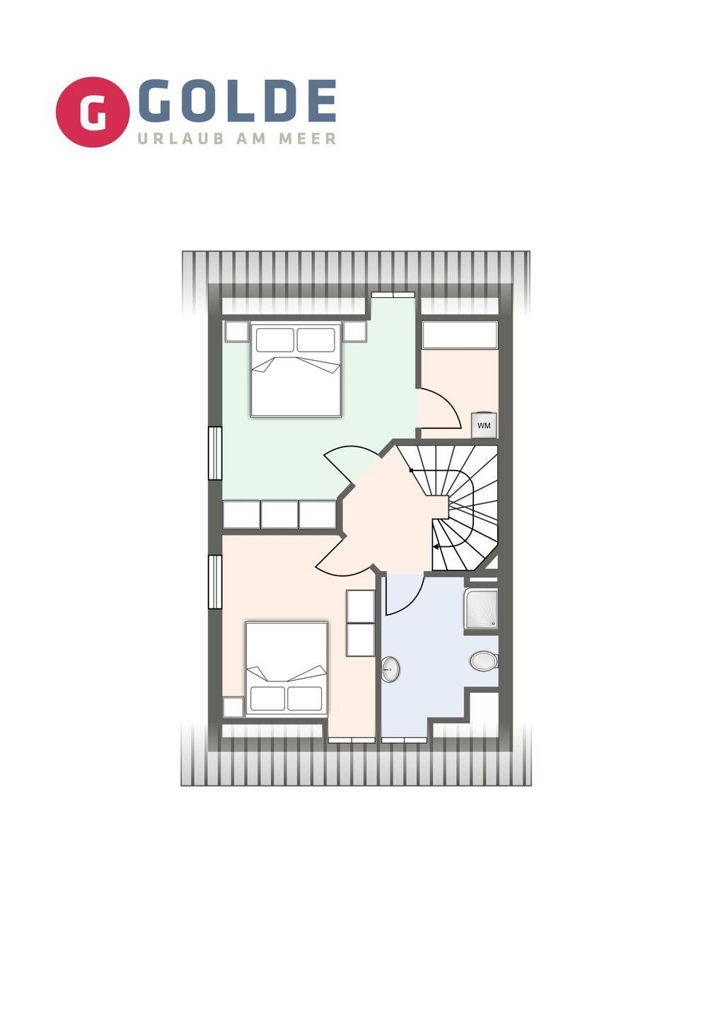 Über eine Holztreppe gelangen Sie ins Obergeschoss, wo zwei Schlafzimmer mit jeweils einem Doppelbett für erholsamen Schlaf sorgen. Ein geräumiges Bad mit Dusche ist ebenfalls im Obergeschoss vorhanden. Im urigen Dachgeschoss steht ein weiteres Einzelbett zur Verfügung.