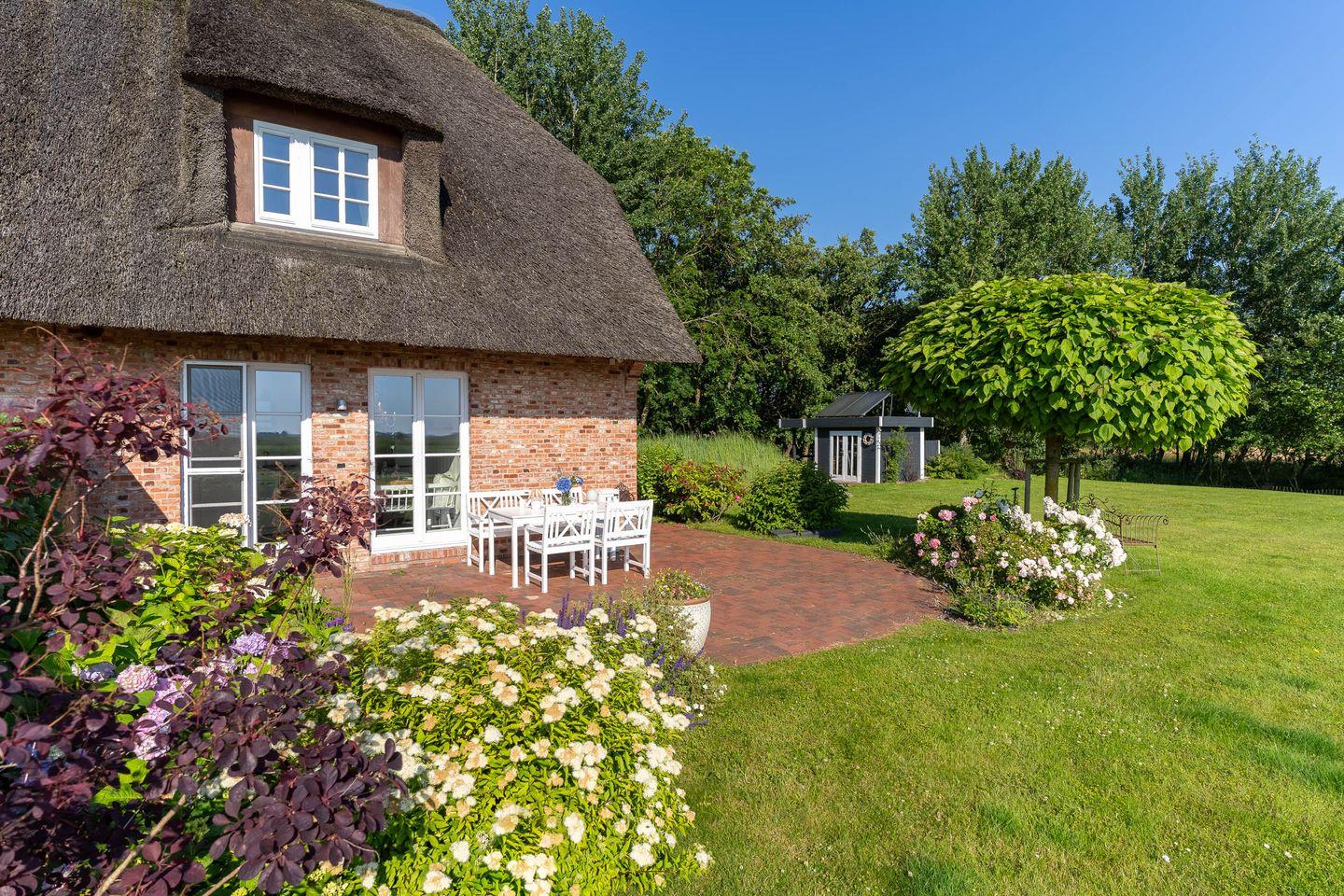 Gemütliche Reetdachhaushälfte mit Garten und Kamin nahe dem Böhler Strand in Sankt Peter-Ording.