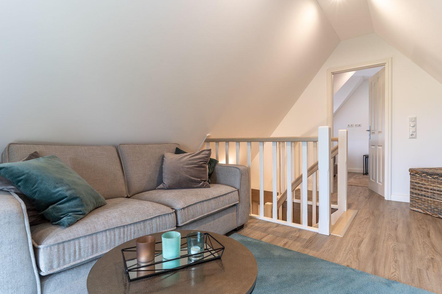 Luxuriöse Reethaushälfte in St. Peter-Ording mit Sauna, Kamin und moderner Ausstattung für erholsamen Urlaub.