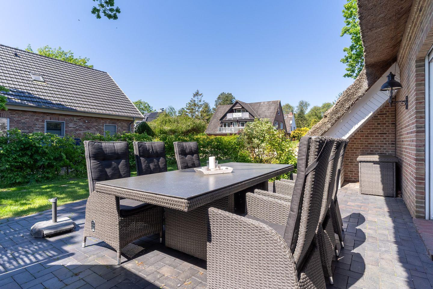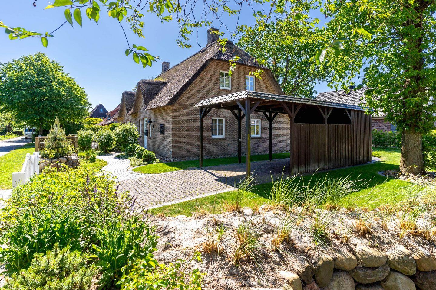 Gemütliche Reetdachhaushälfte in St. Peter-Ording mit modernem Komfort und eigenem Garten für erholsame Ferien.