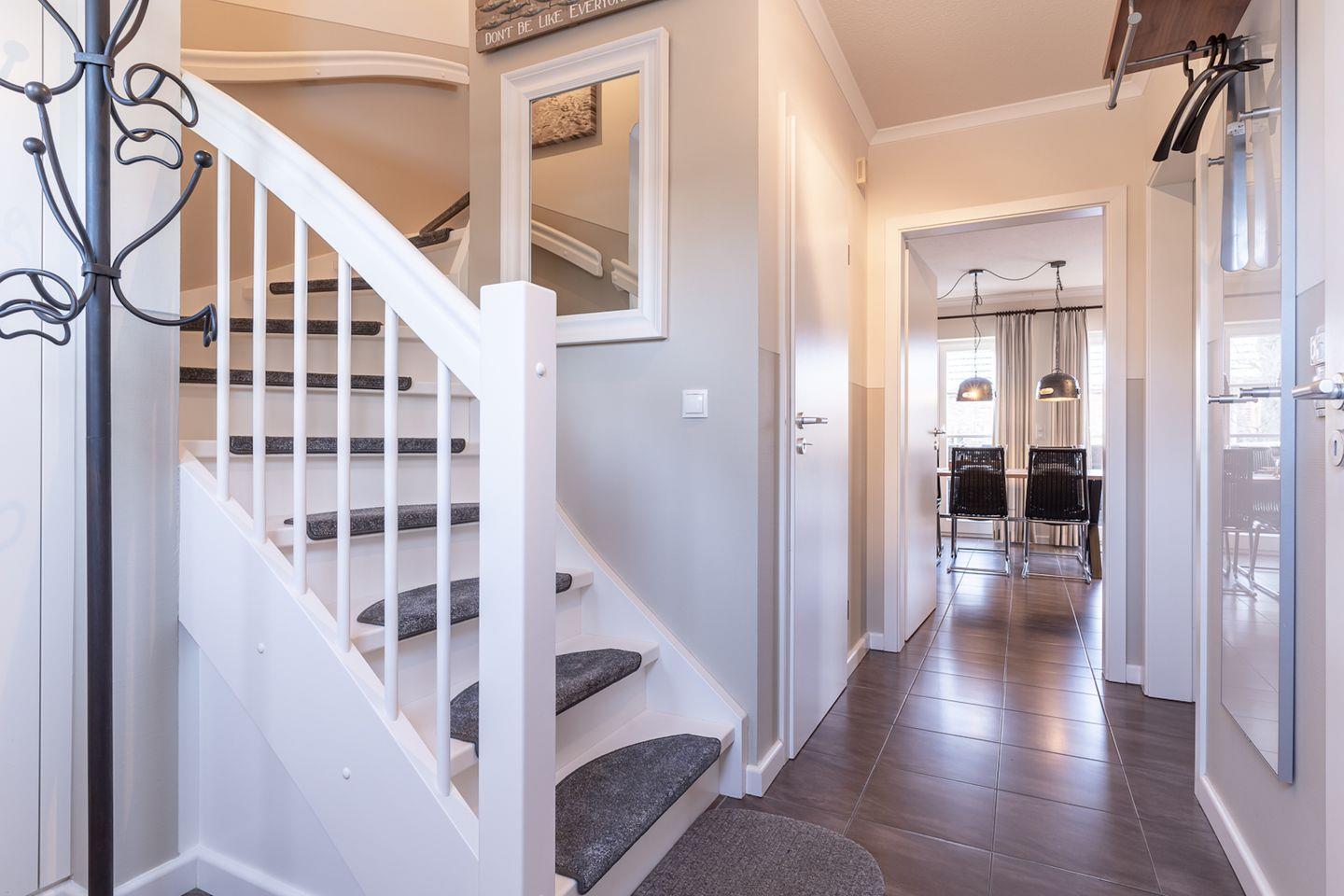 Damit Sie auch an nordischen Tagen keine kalten Füße bekommen, schenkt Ihnen die Fußbodenheizung im Erdgeschoss ausreichend wohlige Wärme.