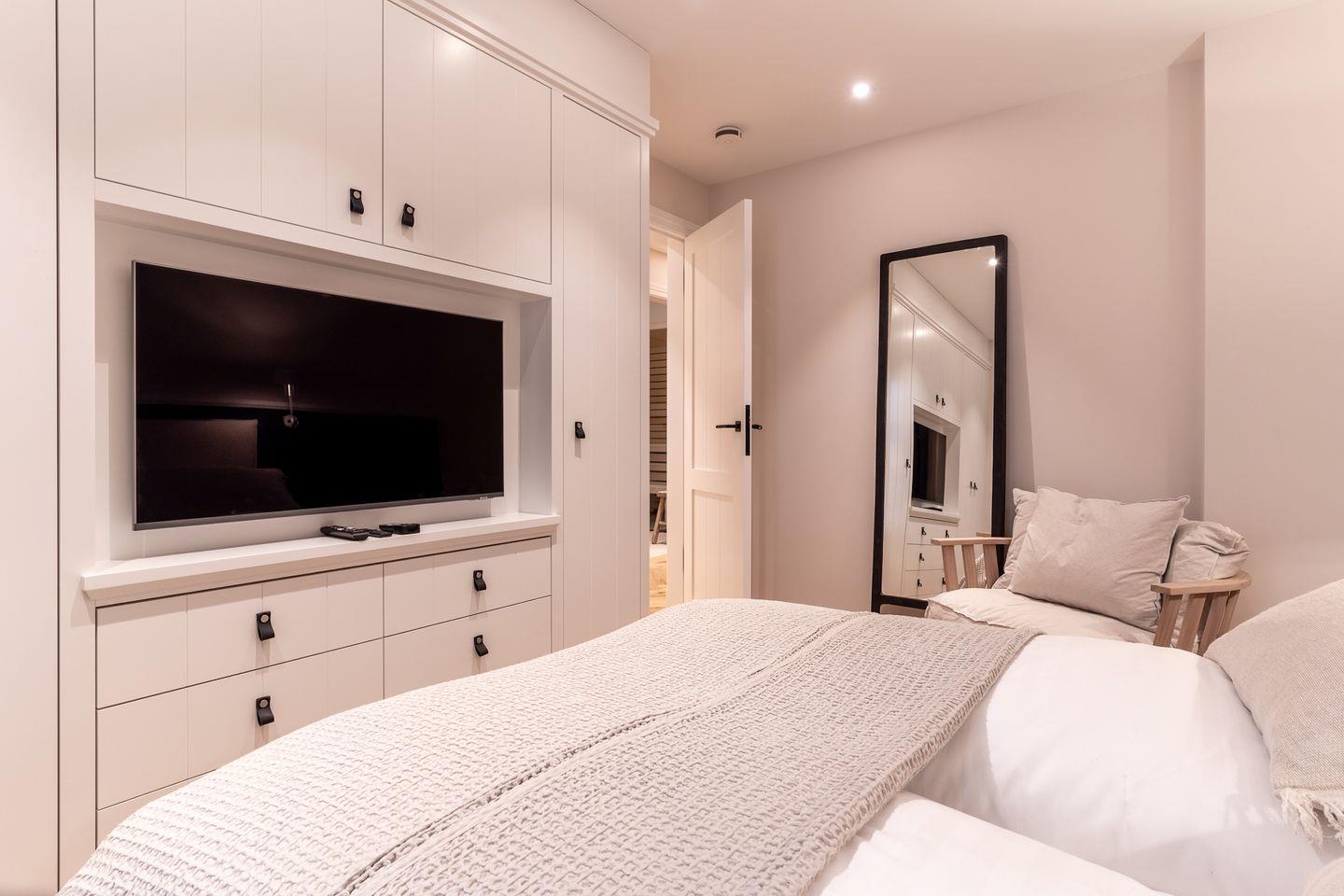 Auf dieser Ebene befinden sich zwei weitere Schlafzimmer, die mit je einem Doppelbett 1x (1,60 x 2,00 m) und 1x (1,80 x 2,00m), Kleiderschrank und TV ausgestattet sind.