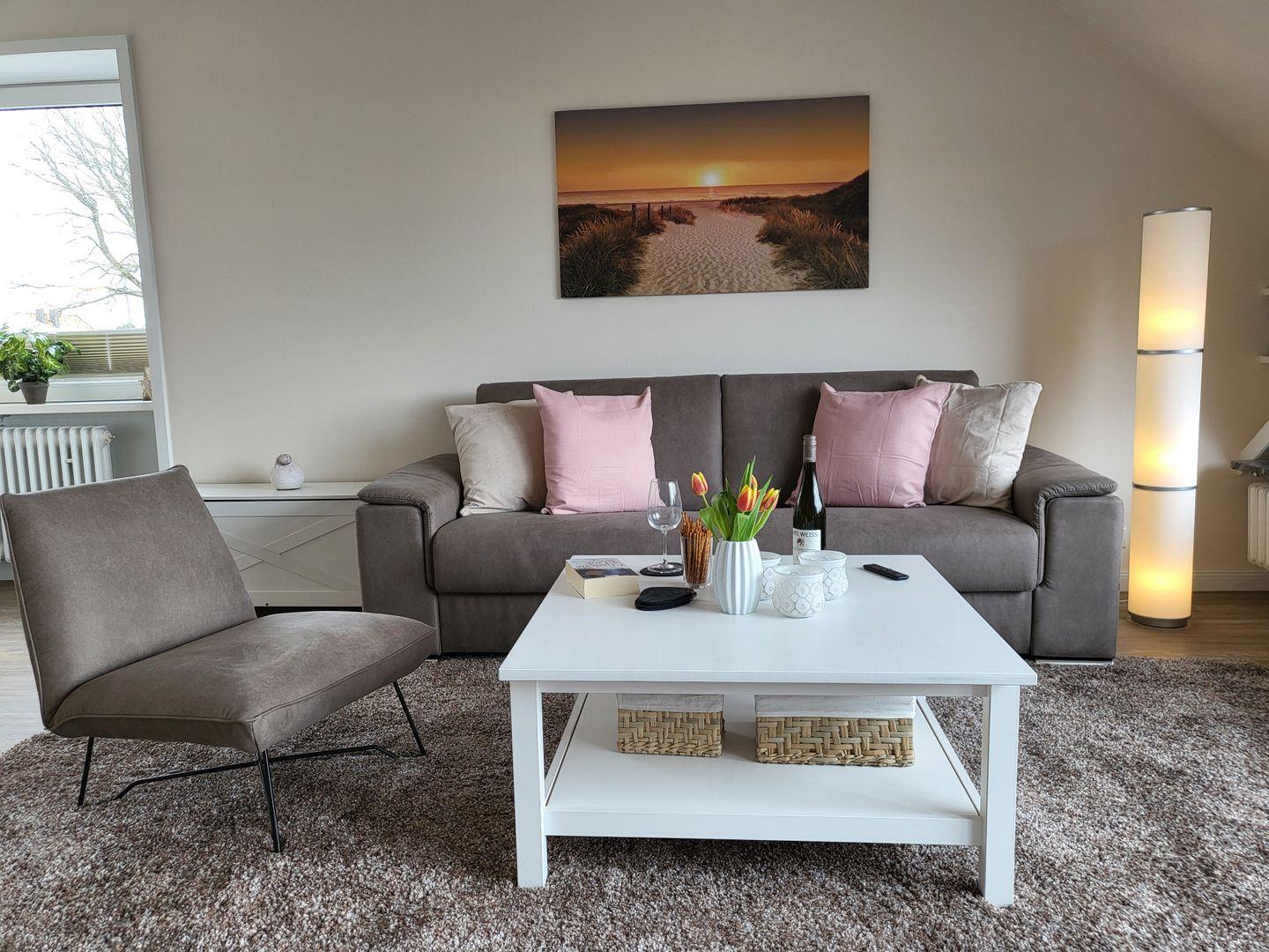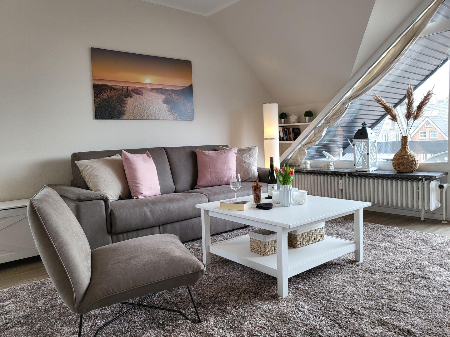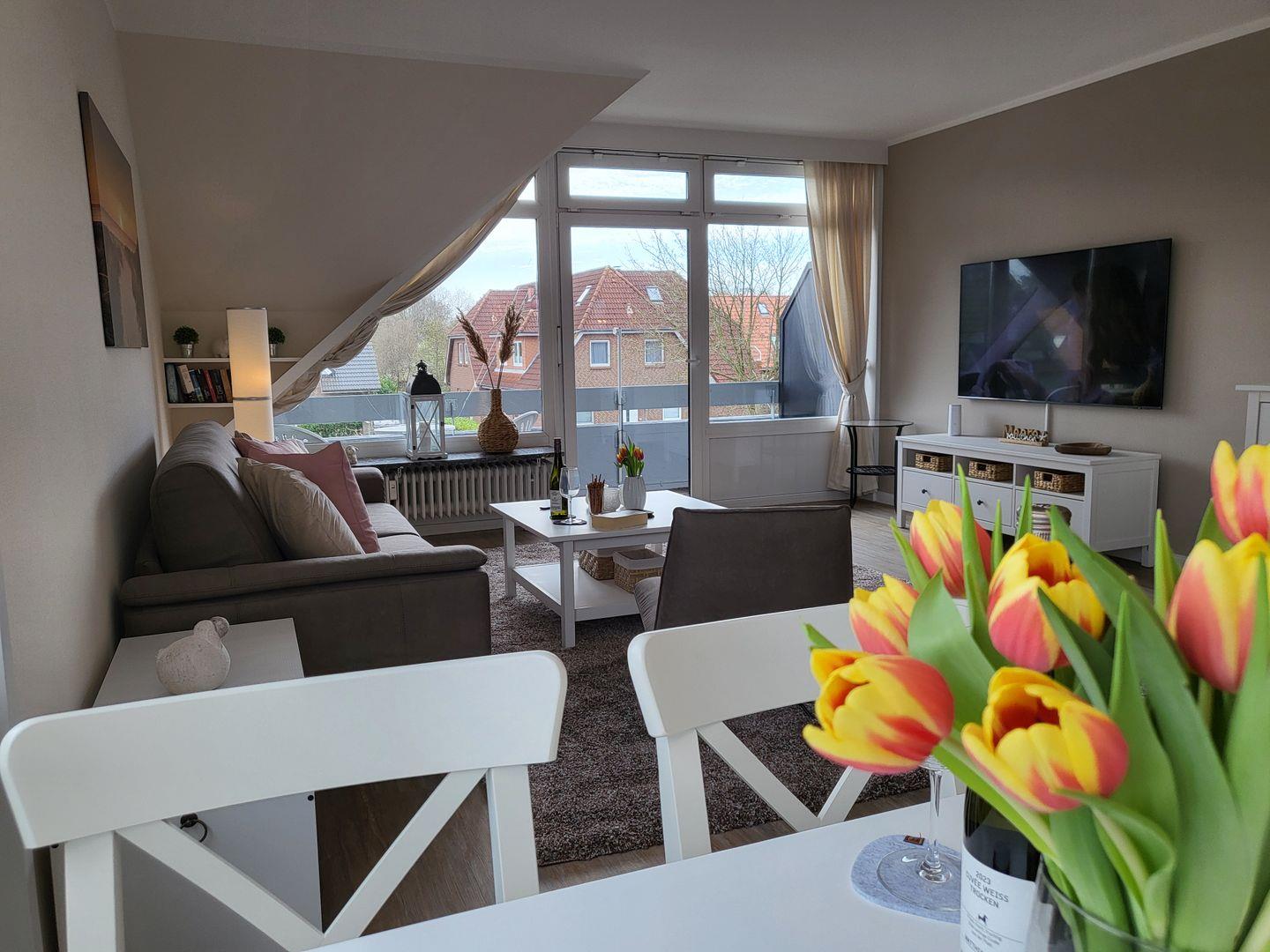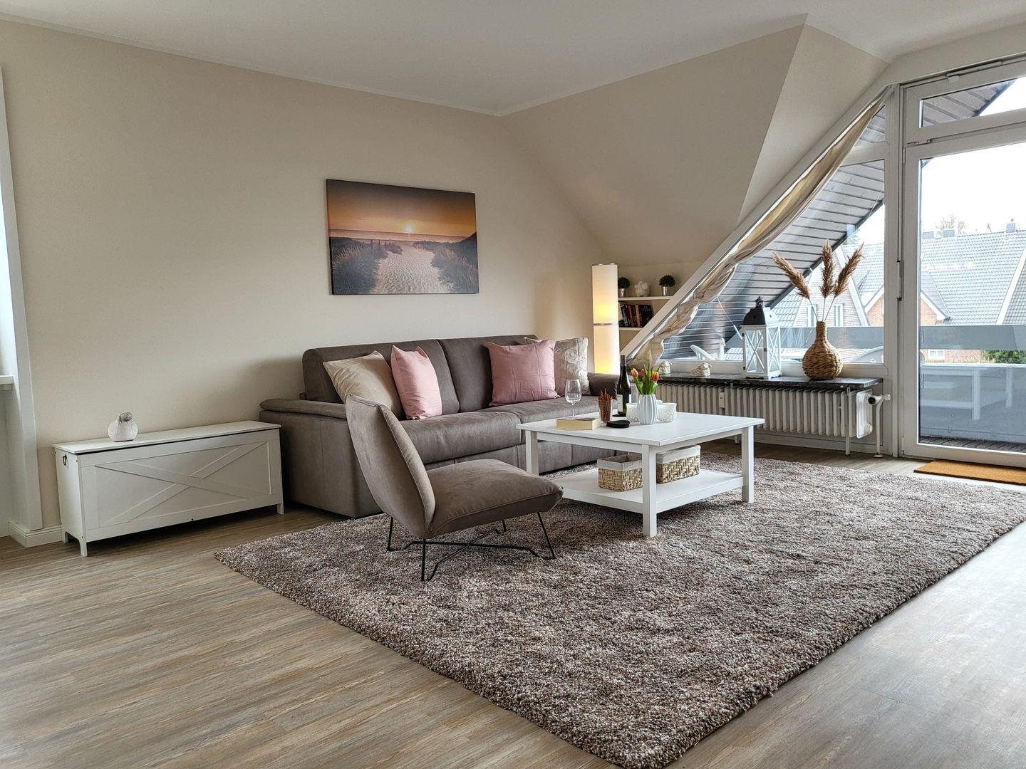 Moderne, helle 2-Zimmer-Ferienwohnung mit Balkon, WLAN und Tiefgarage in zentraler Lage von Sankt Peter-Ording.