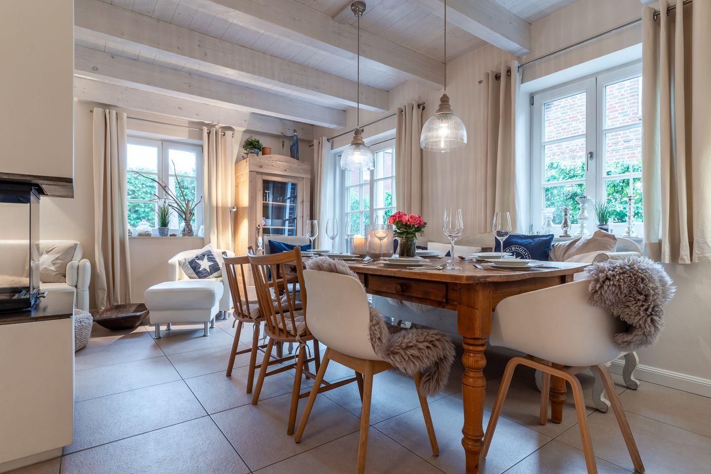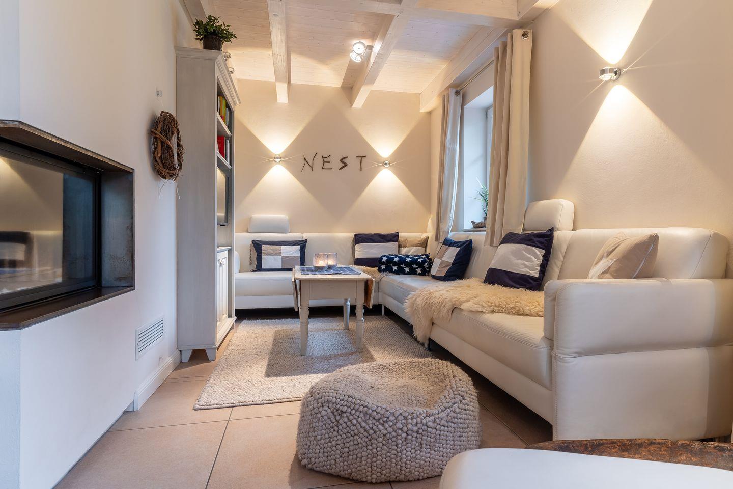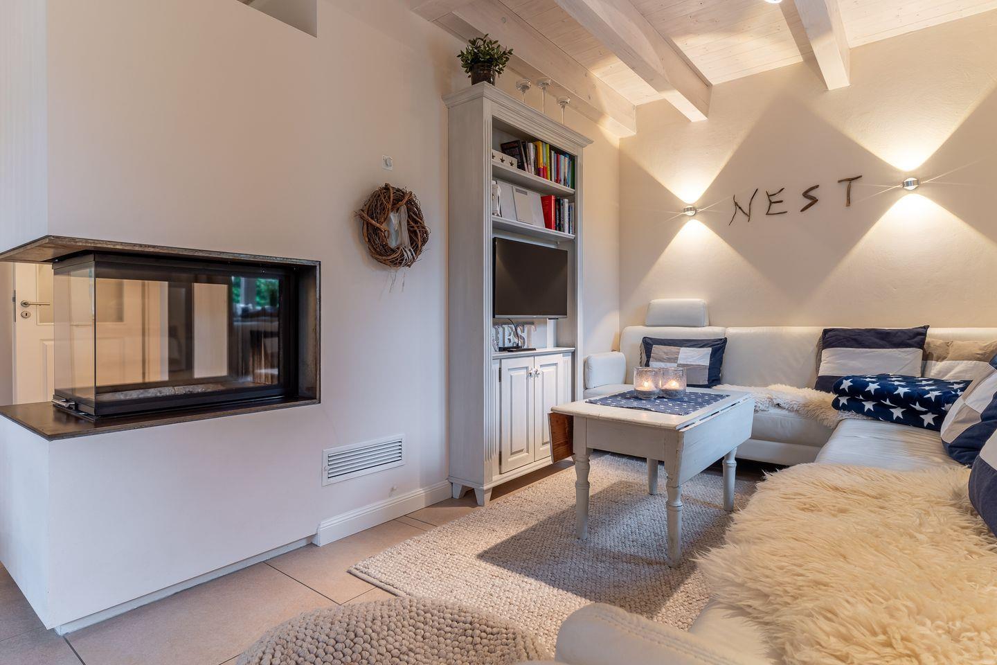 Mitten im urigen Dorfkern liegt das Ferienhaus "Nest & Meer" und lädt mit seiner geschmackvollen und detailverliebten Wohnatmosphäre zu einem unvergesslichen Urlaub ein. In nur wenigen Schritten erreichen Sie verschiedene Einkaufsmöglichkeiten und Restaurants, sowie den Deich und Dünen. Das Domizil selbst besticht durch einen gekonnten Mix aus modernem Chic und Antiquitäten. Eine Prüfung des deutschen Tourismusverbands ergab die Einstufung des Objekts in die Kategorie "5 Sterne".