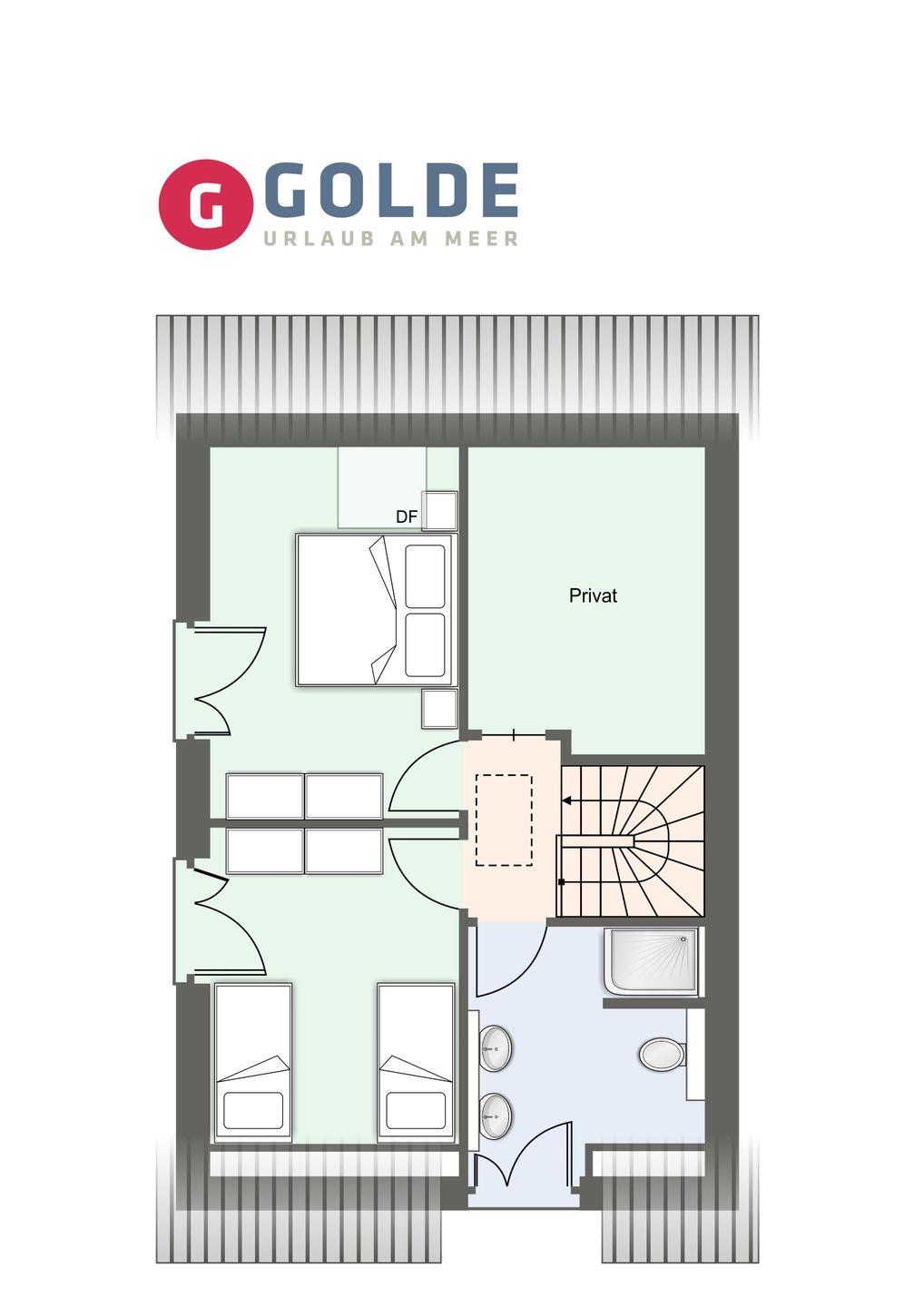 Im Obergeschoss befinden sich zwei traumhaft eingerichtete Schlafzimmer, jedes ausgestattet mit erstklassigen Boxspringbetten (1 Doppelbett und zwei Einzelbetten) für puren Schlafkomfort. Das großzügige Bad verführt mit einer Wellnessdusche zum Verweilen.