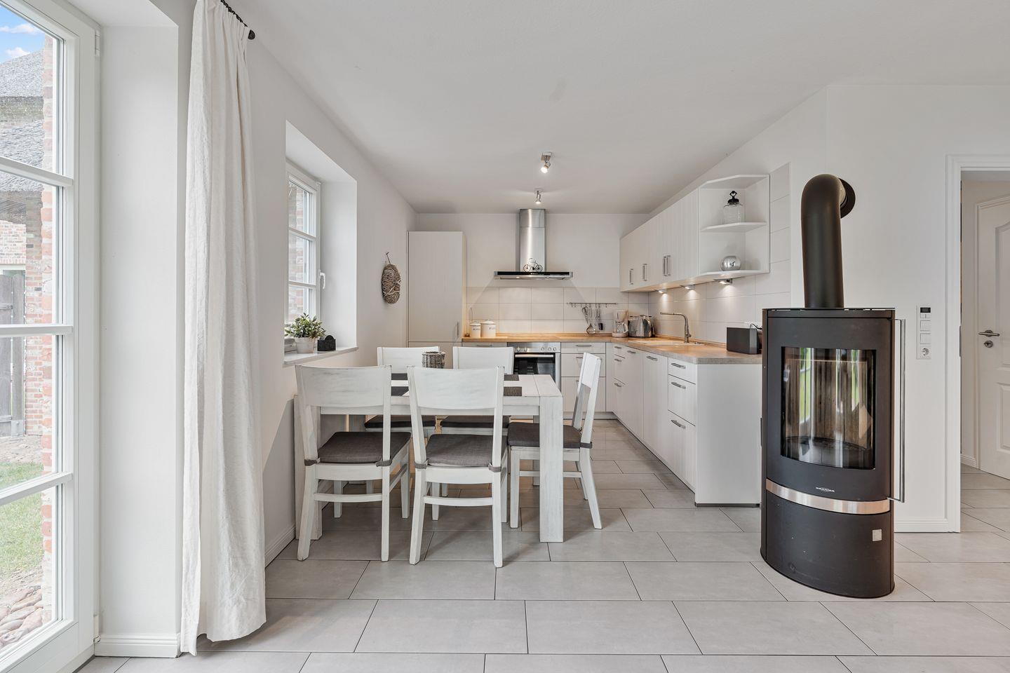Willkommen in dieser wunderschönen Doppelhaushälfte unter Reet, die mit einer großzügigen Wohnfläche von etwa 107 m² für bis zu 5 Personen konzipiert ist.