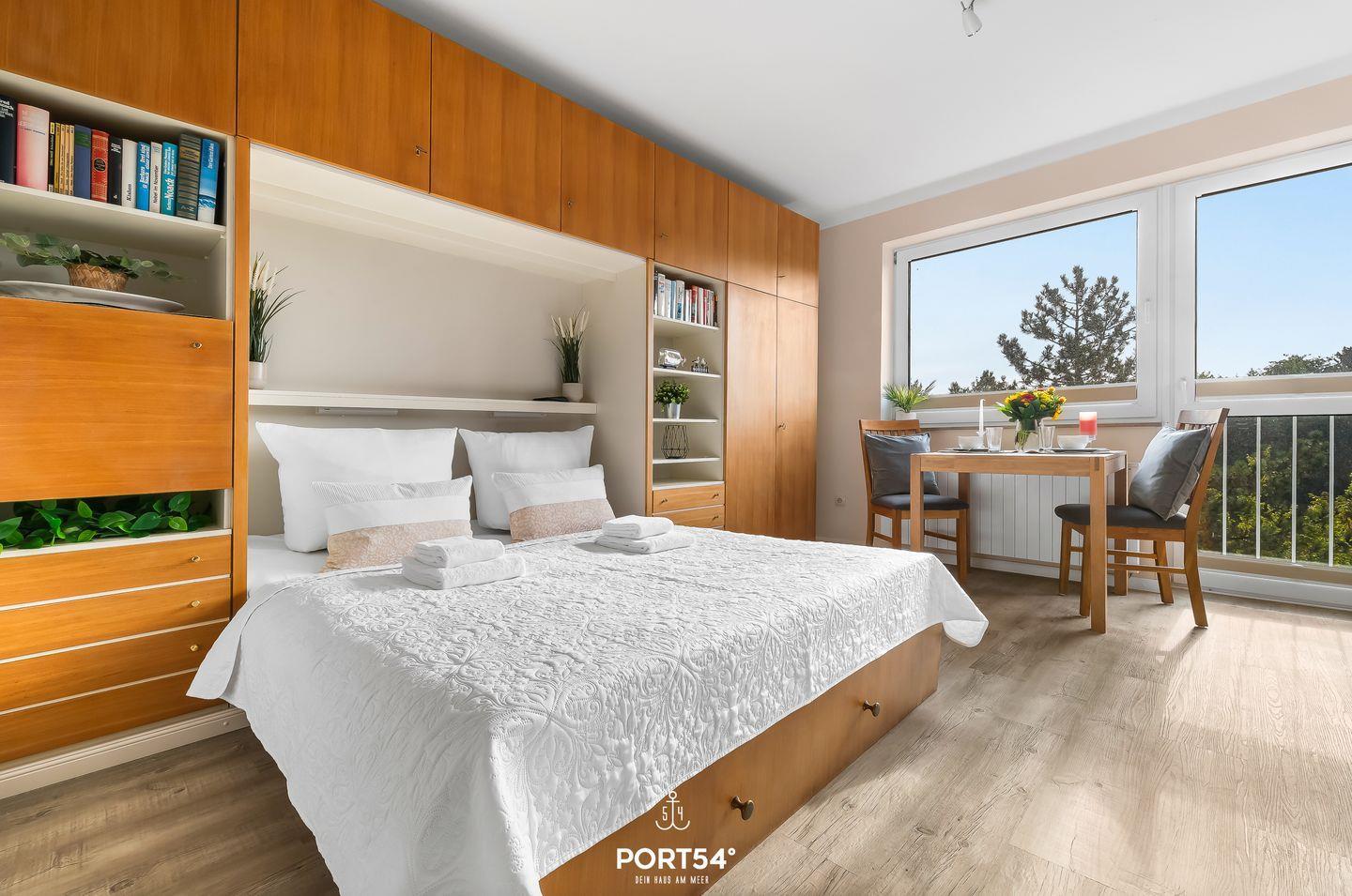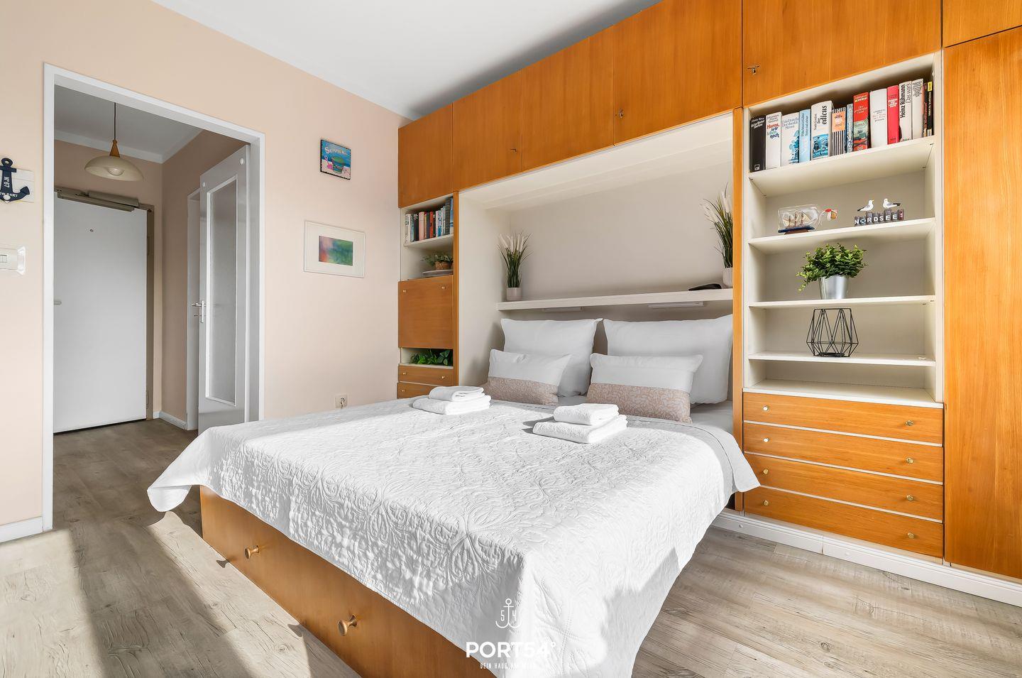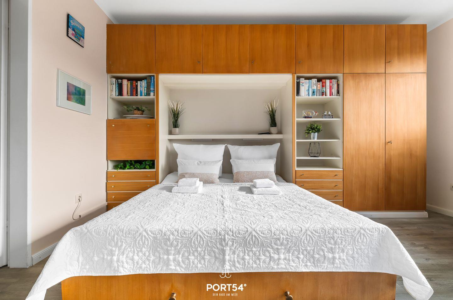Für einen erholsamen Schlaf gibt es ein schönes großes Schrankbett.