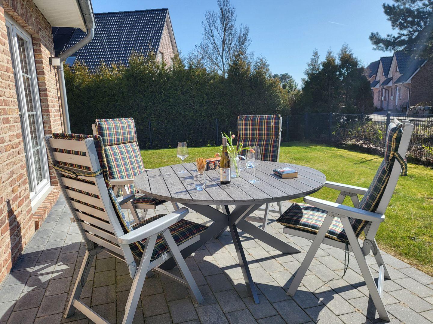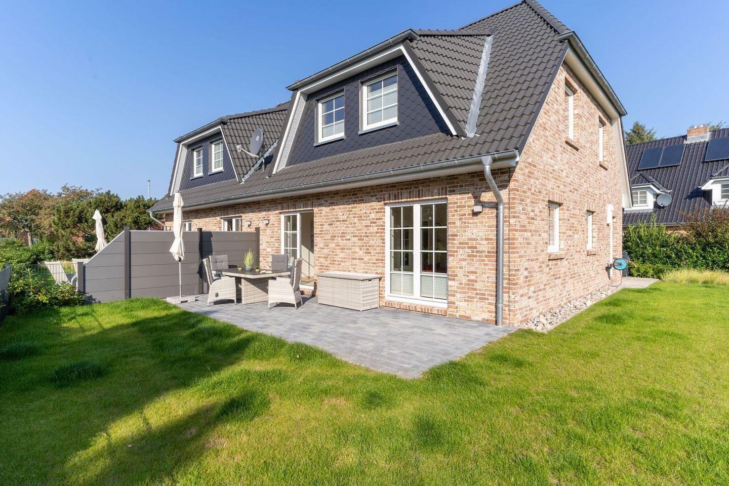 Moderne Doppelhaushälfte in St. Peter-Ording mit Terrasse, Garten und Platz für bis zu 4 Personen, ideal für Familien und Haustiere.