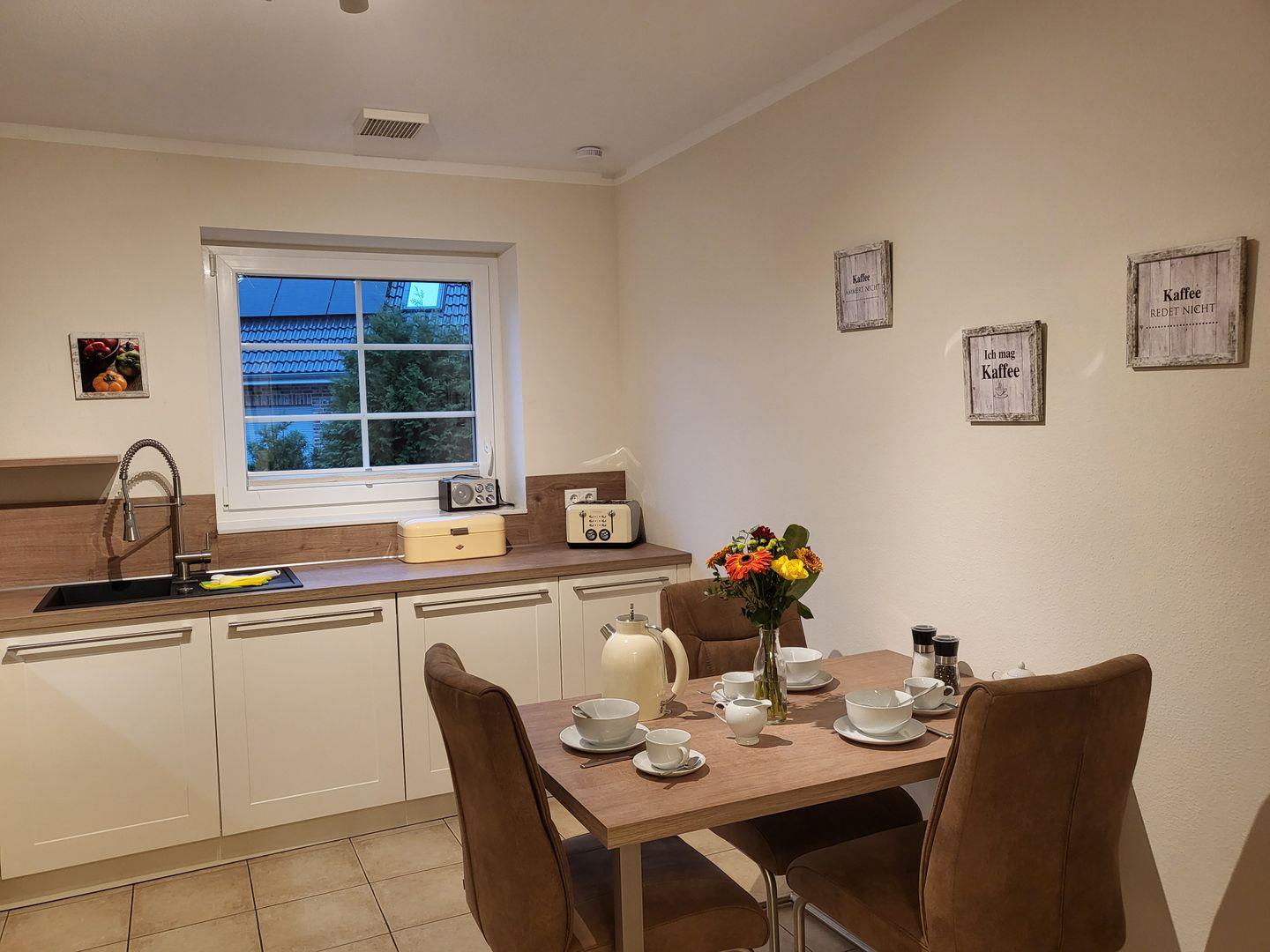 Die separat gelegene Küche, mit einem kleinem Esstisch, ist modern und hochwertig ausgestattet.