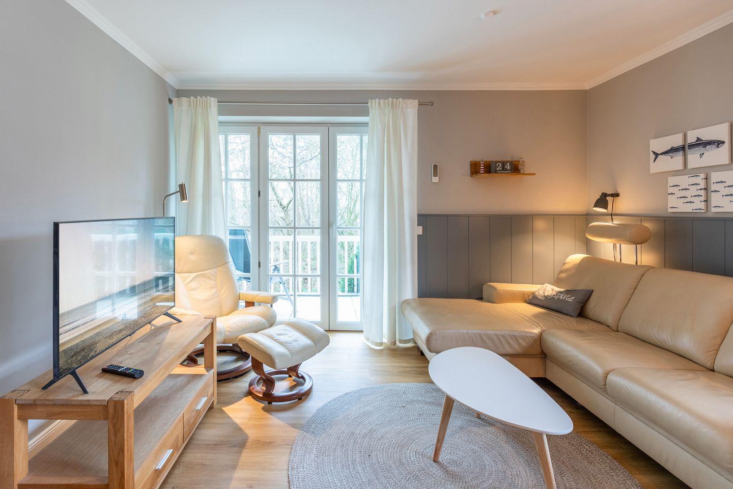 Die Wohnung besticht durch ihr modernes, gemütliches Ambiente und bietet Ihnen alles, was Sie für einen unvergesslichen Aufenthalt benötigen. Der helle, offene Wohnbereich lädt mit einer Sofaecke und einem Fernseher zum Entspannen und Kuscheln ein. Von hier aus haben Sie auch Zugang zu einem Balkon, auf dem Sie die frische Luft genießen und den Tag mit einem Frühstück im Freien beginnen können.