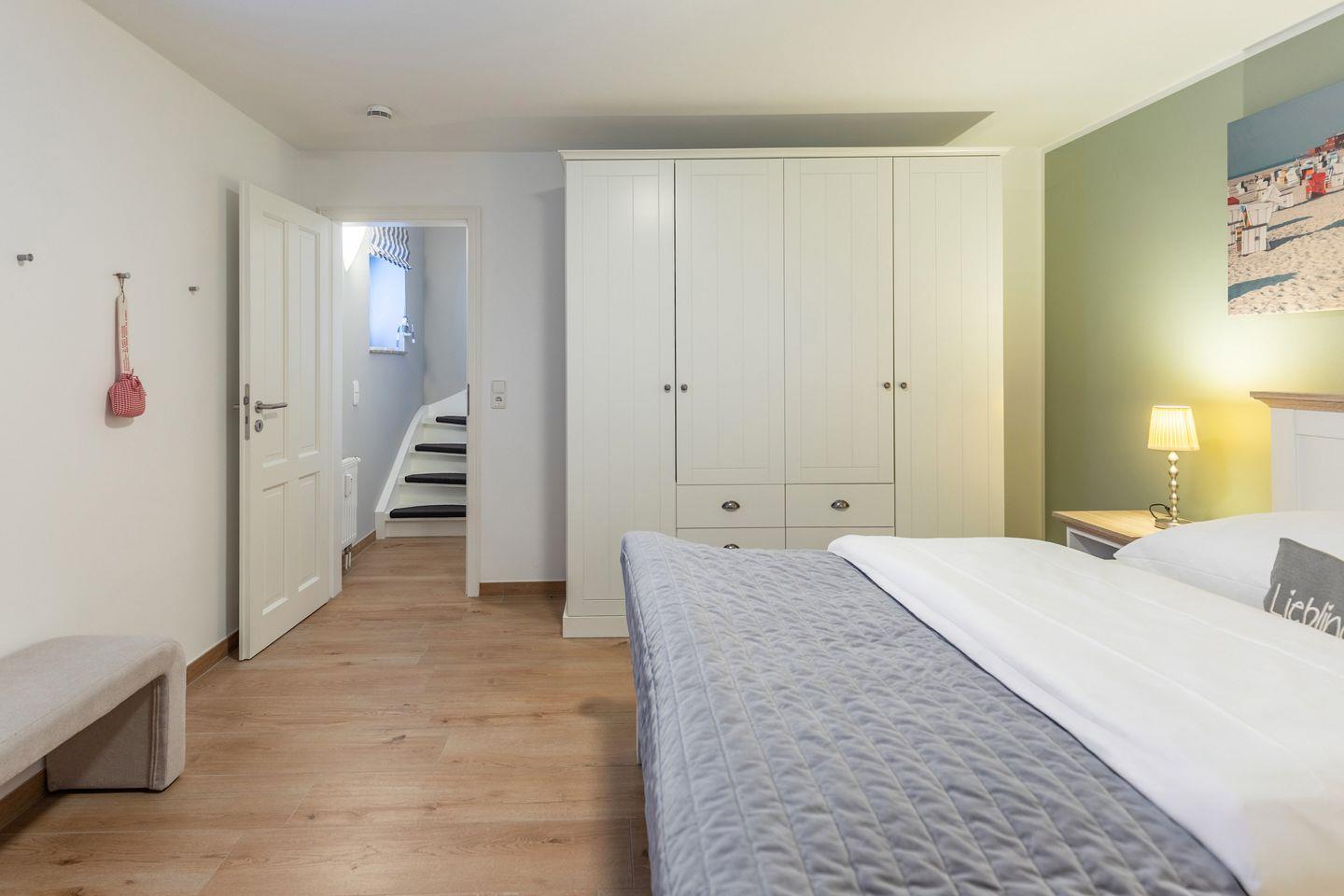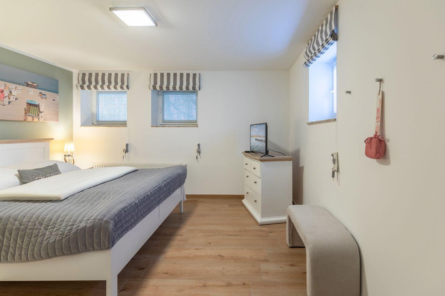 Im Schlafzimmer erwartet Sie ein bequemes Doppelbett. Das moderne Duschbad rundet das Bild ab.