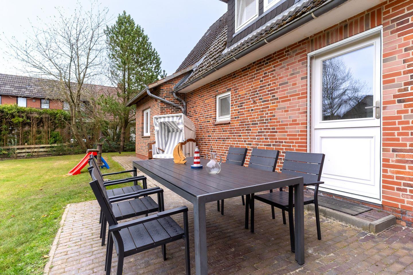 Das Ferienhaus Frieseneiche in St. Peter-Ording bietet Platz für bis zu 10 Personen und überzeugt mit großem Garten und Terrasse.