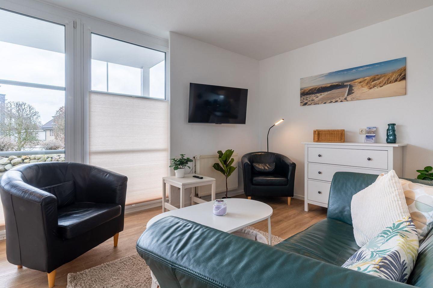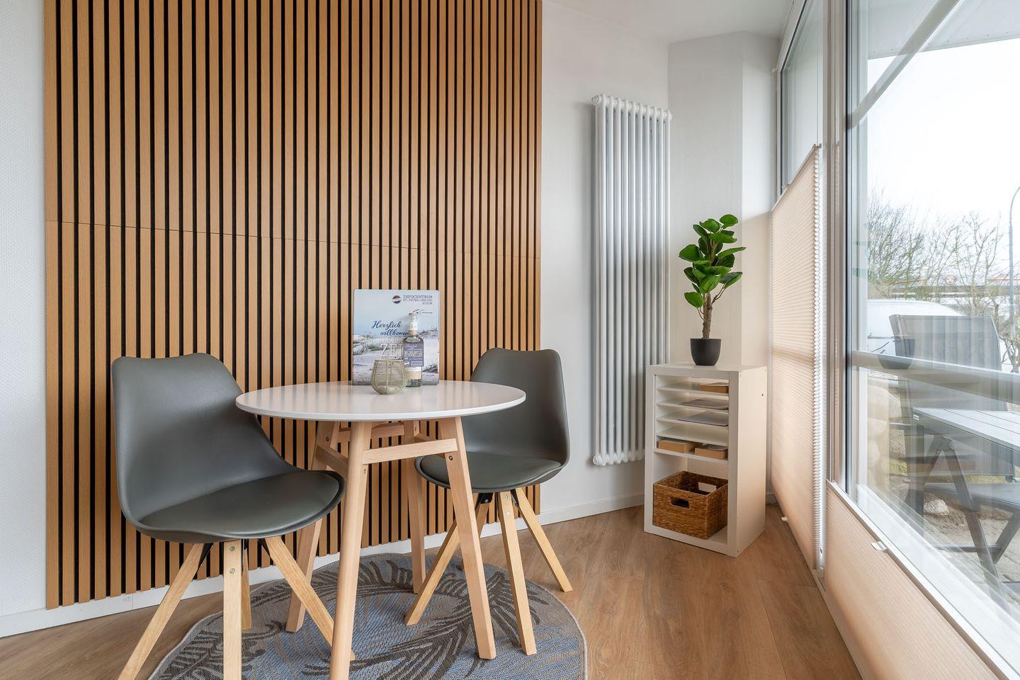 Frisch sanierte Ferienwohnung Four Twee in Sankt Peter-Ording, mit Terrasse, moderner Ausstattung und Nähe zur Nordsee.
