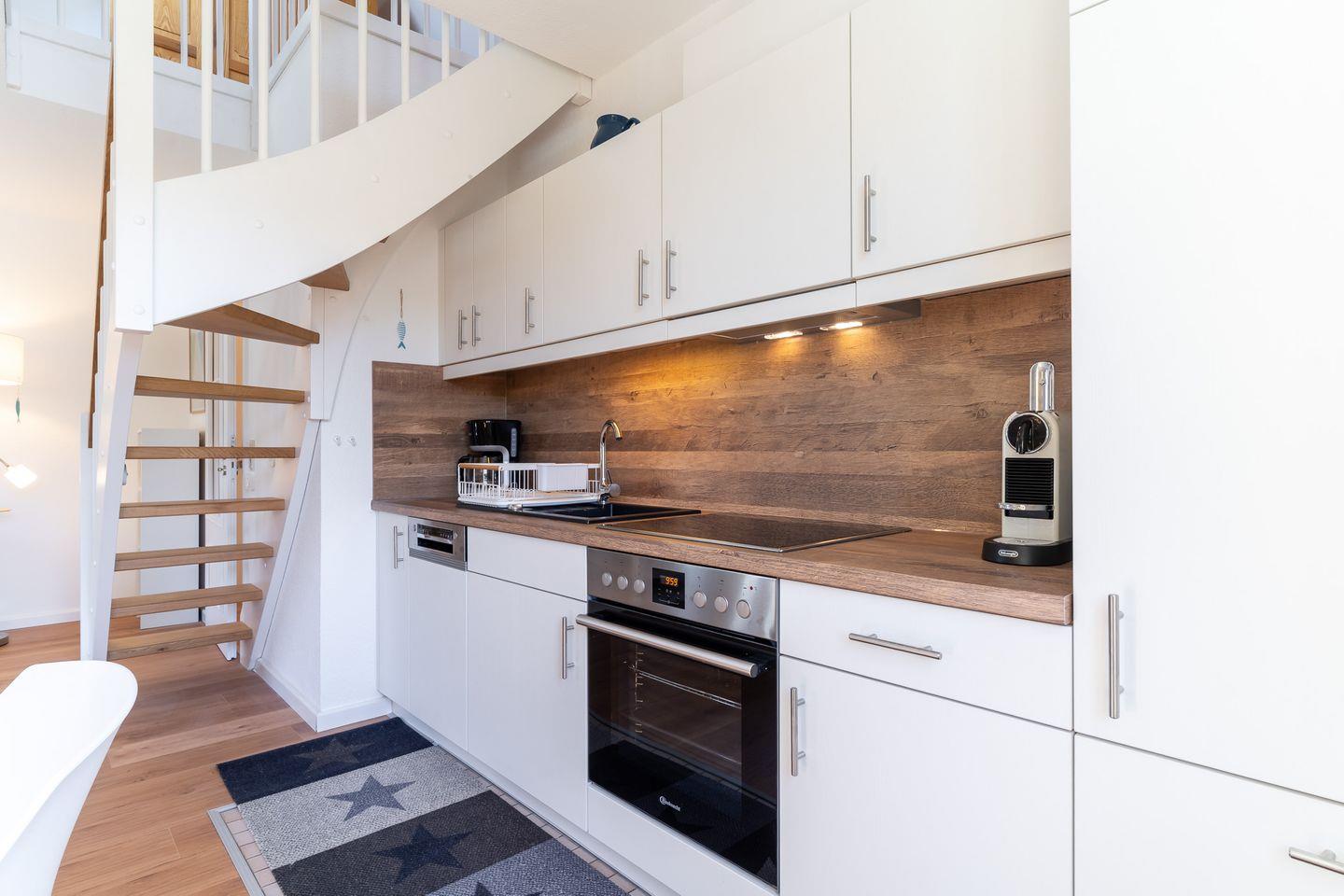 Moderne Ferienwohnung Jolis Friesenstuv in Sankt Peter-Ording mit Balkon und voll ausgestatteter Küche.