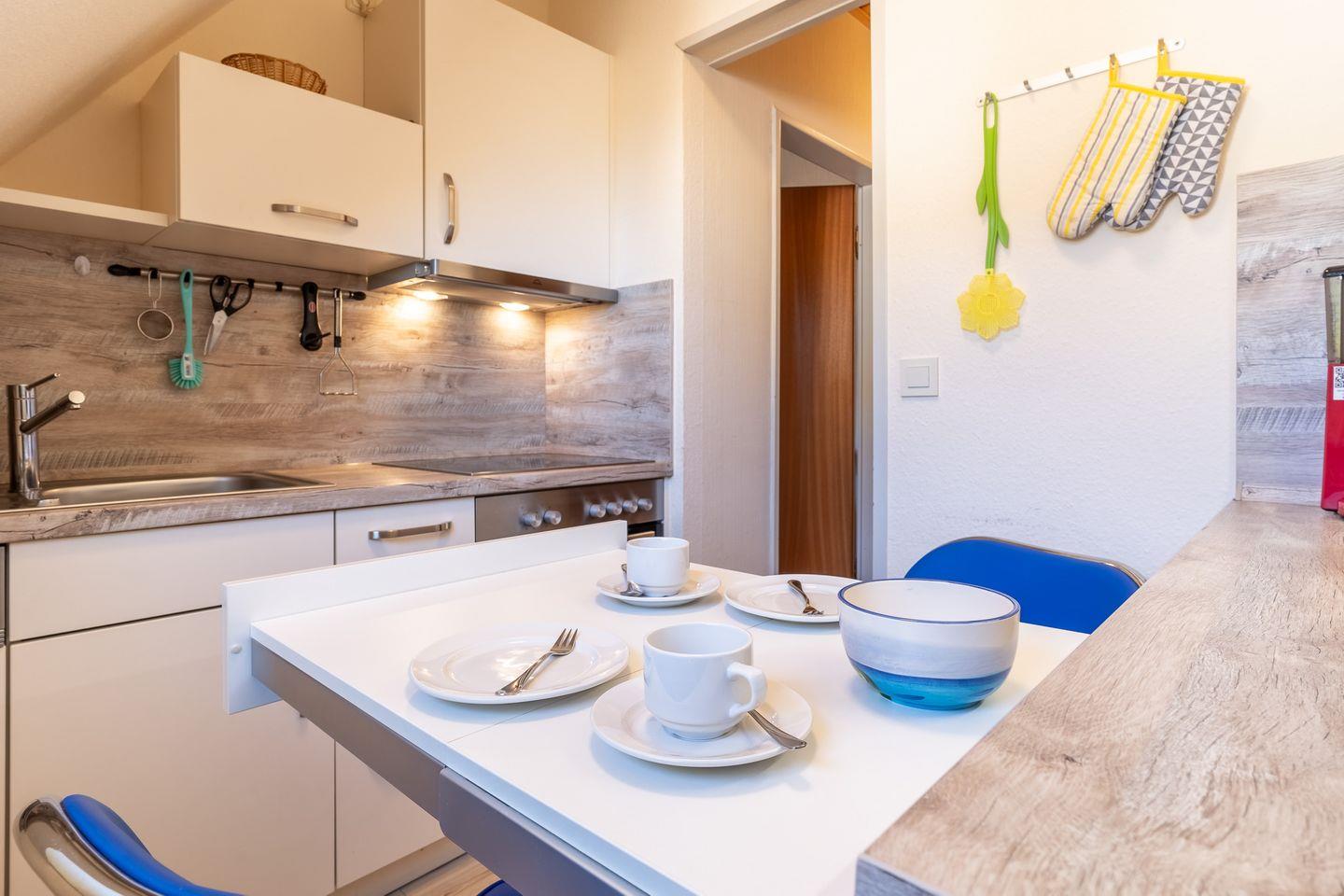 • Küche: Moderne Ausstattung mit Geschirrspüler, Cerankochfeld, Backofen, Kühlschrank mit Gefrierfach, Kaffeemaschine, Toaster und Wasserkocher – ideal für die Zubereitung leckerer Mahlzeiten.