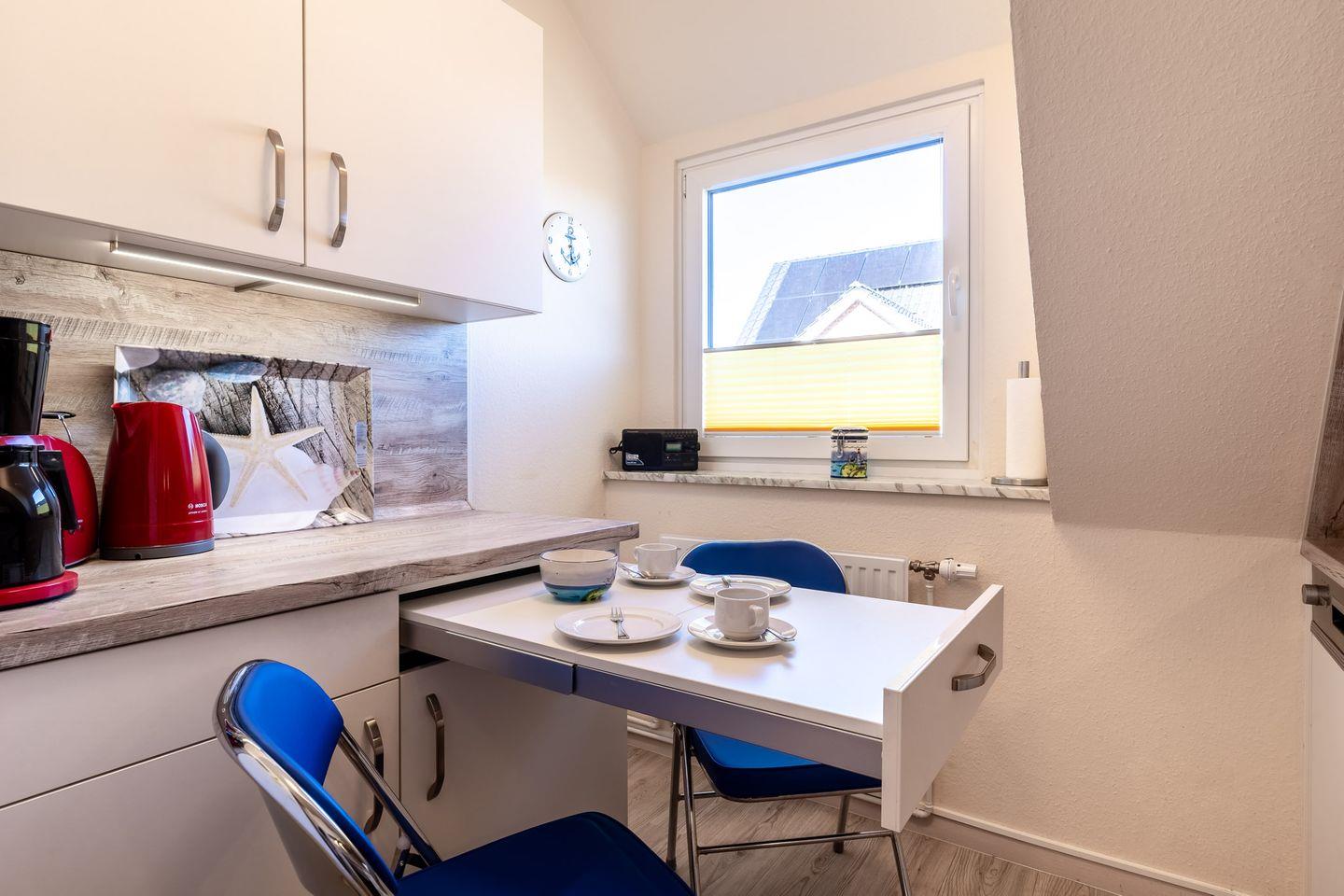 Die Ferienwohnung 03 im Gästehaus Nordlicht bietet eine frisch renovierte Küche und ein modernes Duschbad. Gelegen im 1. Obergeschoss zur Gartenseite mit Nord-West-Balkon, lädt sie zum Entspannen ein. Ausstattung: Doppelbett, Schlafsofa, WLAN, abschließbarer Fahrradschuppen und eigener Parkplatz (Nr. 3). Nichtraucher, keine Haustiere.