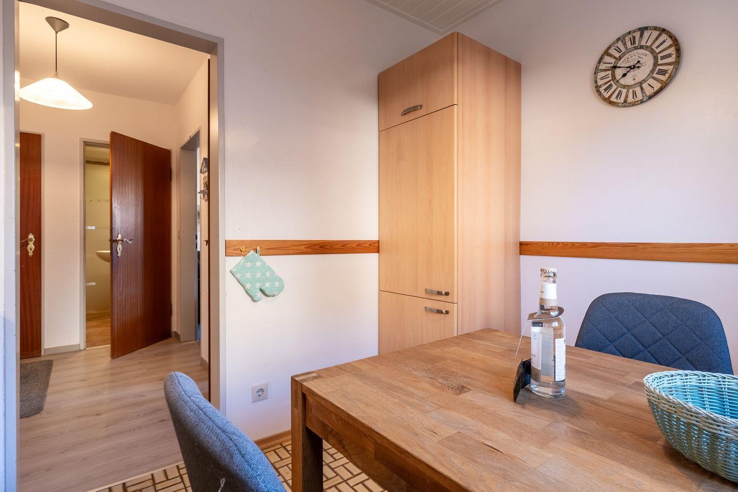 Diese frisch renovierte Erdgeschosswohnung bietet auf 50 m² Platz für bis zu 4 Personen. Die Süd-Ost-Terrasse zur Straßenseite lädt zum Entspannen ein und ist mit Gartenmöbeln ausgestattet (nutzbar vom 01.04. bis 30.10.).