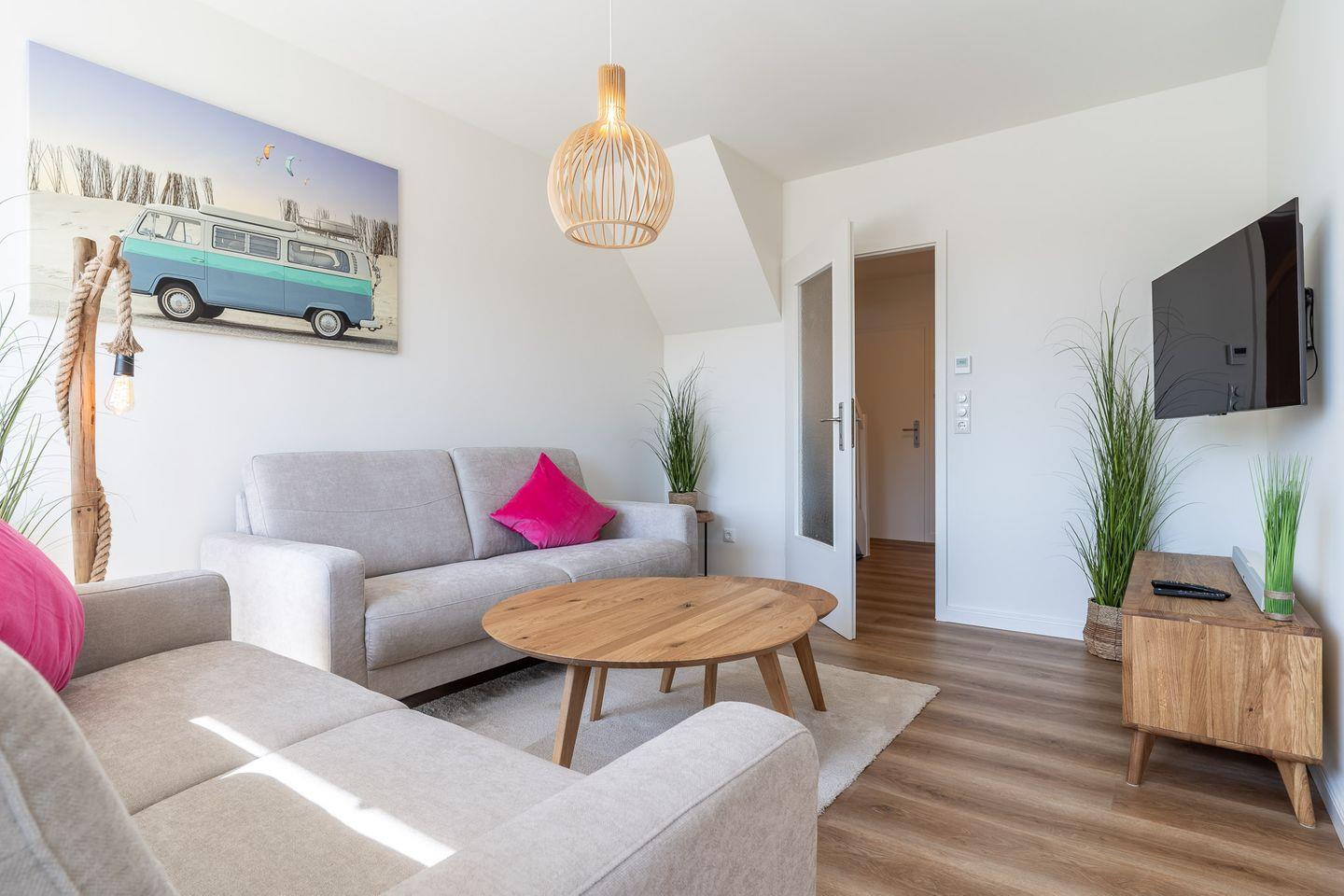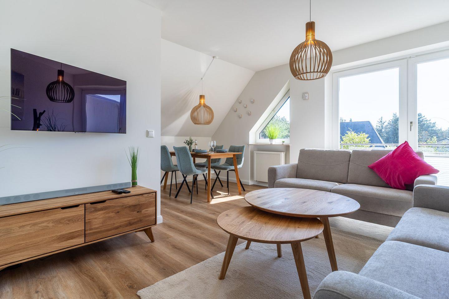 Moderne, frisch sanierte Ferienwohnung im Zentrum von Sankt Peter-Ording mit Balkon und hochwertiger Ausstattung.