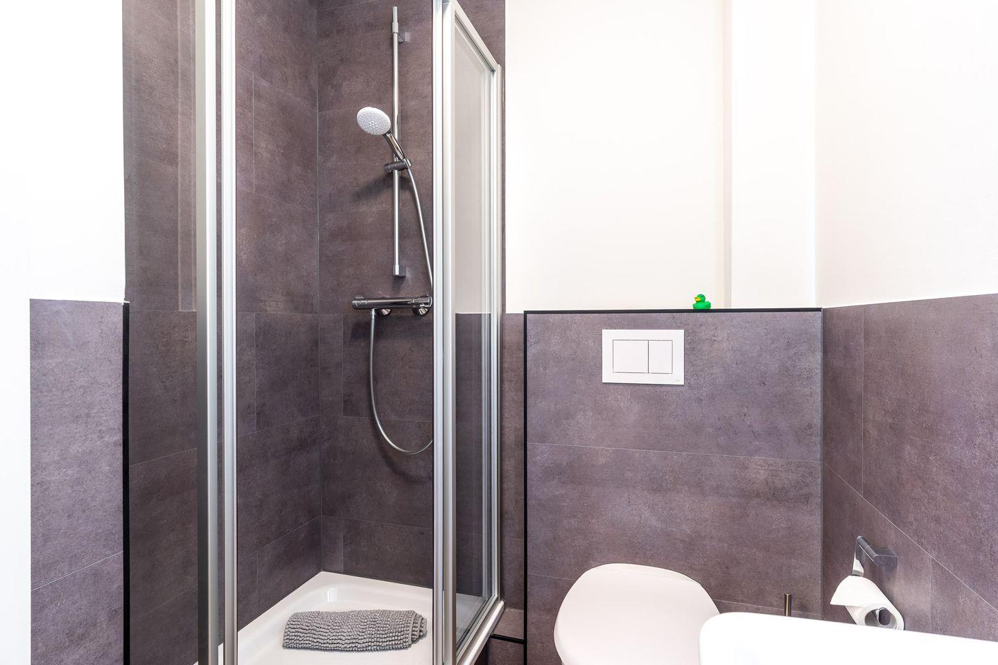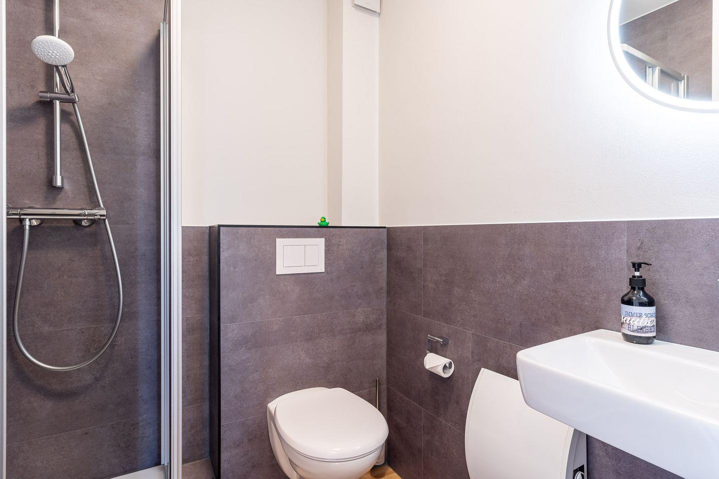 Ein Badezimmer mit Dusche rundet die Ausstattung ab. Hier finden Sie auch Annehmlichkeiten wie einen Haartrockner, einen Kosmetikspiegel sowie ein WC mit Waschbecken. Praktische Details, wie ein Staubsauger und Geschirrhandtücher, wurden ebenfalls berücksichtigt, um Ihren Aufenthalt so komfortabel wie möglich zu gestalten.