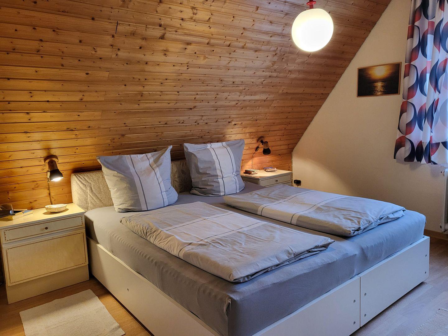 ruhig gelegenes, alleinstehendes Haus mit 3 Wohnungen, Whg. 1. OG links, WLAN, Nichtraucher, bis zu 4 Personen, privater Stellplatz auf Grundstück, separate Küche, Schlafzimmer mit Doppelbett, überdachter Fahrradunterstellplatz, gemeinschaftliche Gartennutzung, keine Haustiere, familienfreundlich