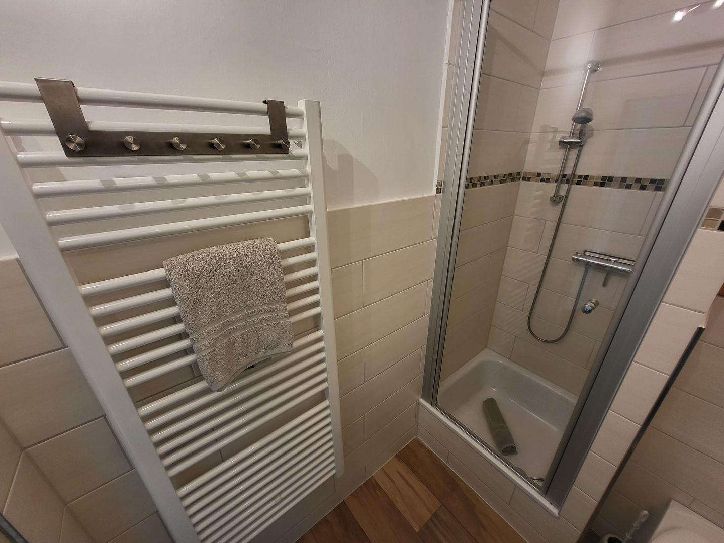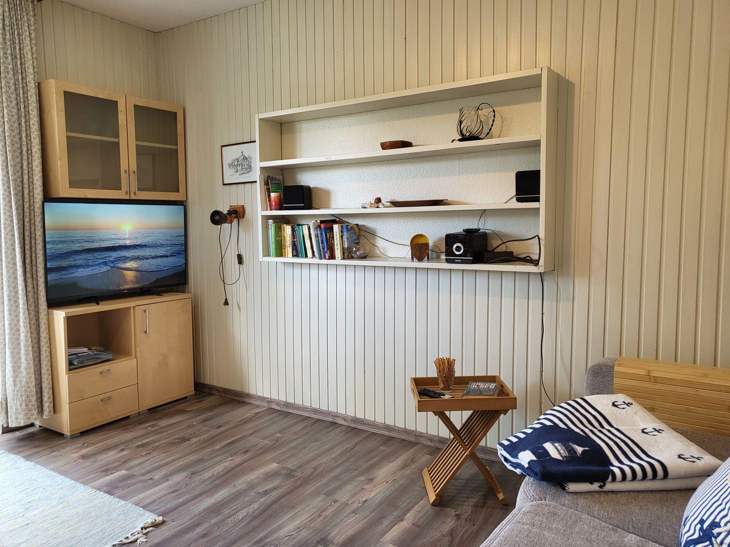 Die Wohnung besteht aus einem Wohn-/Schlafraum (Komplettsanierung im Frühjahr 2025) mit einer Schlafcouch (mit echter Matratze), einem kleinen Kinderzimmer mit Etagenbett (ein Kinderbett kann aufgestellt werden) sowie einem Duschbad (Komplettsanierung im Frühjahr 2016) sowie einem Flur mit Küchenzeile.