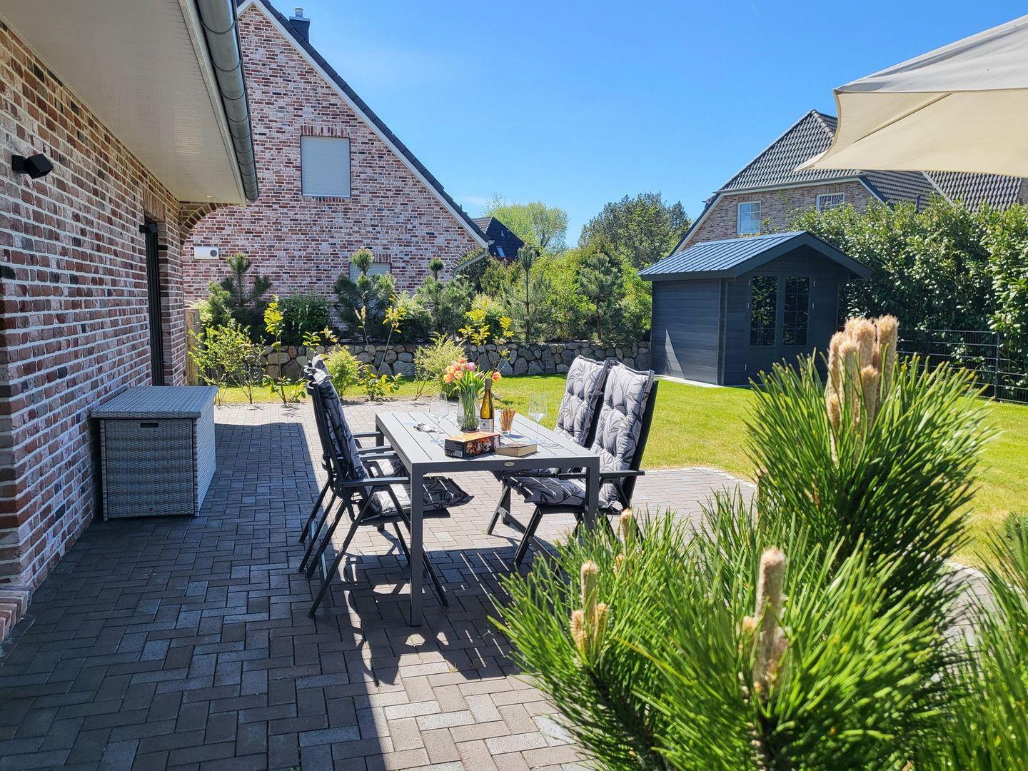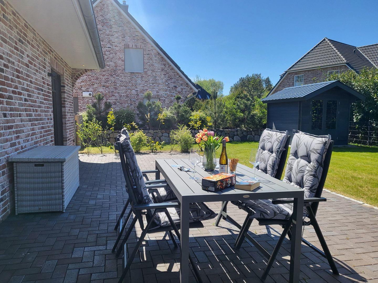 Im Außenbereich erwartet Sie eine sonnige Terrasse mit Gartenmöbeln, die perfekt ist, um die frische Luft und den Blick auf den Garten zu genießen. Das vollständig abgeschlossene Grundstück verspricht nicht nur Privatsphäre, sondern auch Sicherheit für Kinder und Haustiere. Maximal ein Haustier (gegen Gebühr) ist willkommen, damit auch Ihr vierbeiniger Freund einen unbeschwerten Urlaub erleben kann. Für die kleinen Gäste steht kostenfrei ein Kinderhochstuhl zur Verfügung.