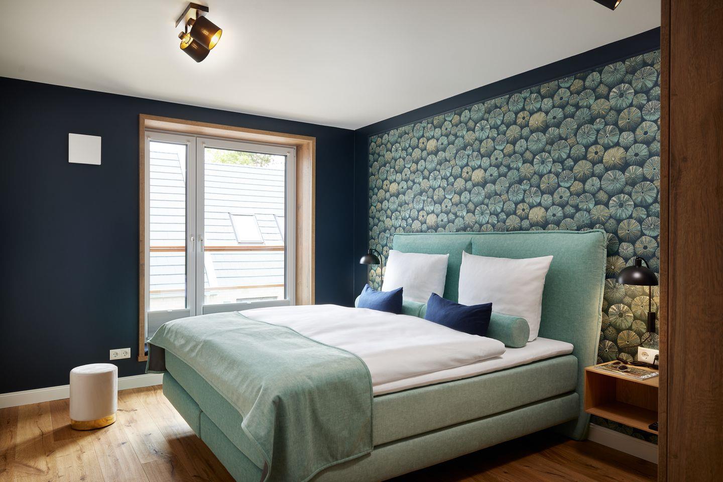 Zwei Schlafzimmer mit bequemen Boxspringbetten bieten Platz für vier Gäste. Besonders komfortabel: zwei moderne Badezimmer mit begehbarer Dusche, eines davon sogar en suite.